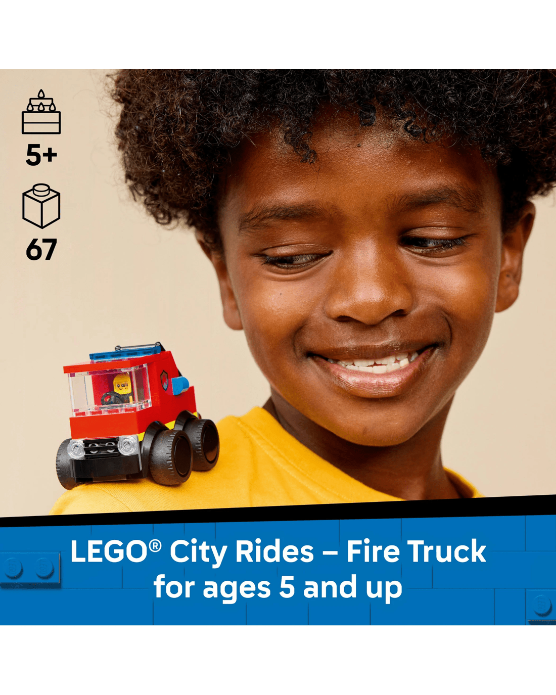 - Firefighter Toy For Kids - Ignite exciting rescue adventures with this easy-to-build LEGO City Rides - Fire Engine toy for kids