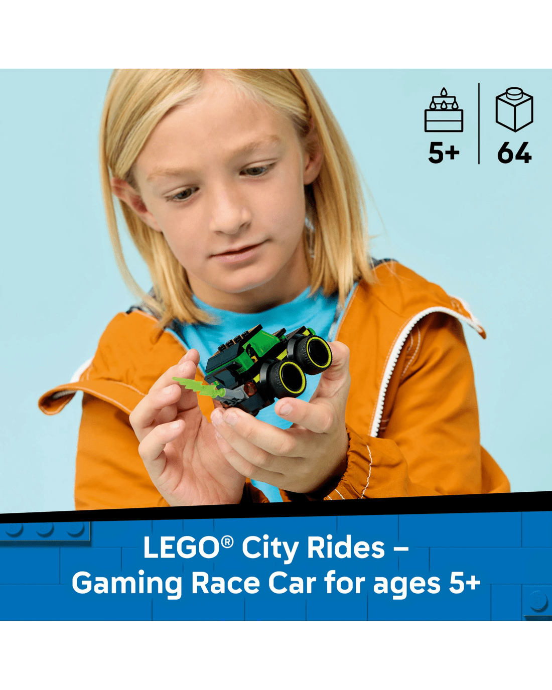 - Easy-to-build Small Car Toy - This LEGO City Rides building set includes everything kids need to build their own gaming-themed car toy and Rides driver junior minifigure