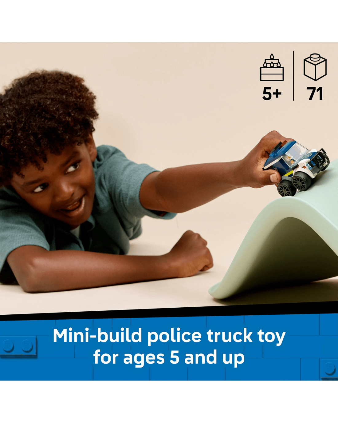 - Police Toy For Kids - Mobilise exciting police patrol adventures with this LEGO City Rides - Police Truck building set for young builders