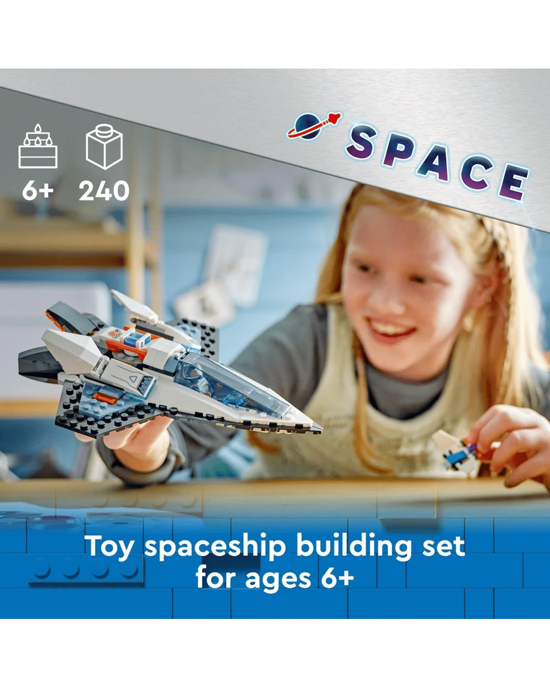 - What's in the box - This fun building toy includes everything kids need to build an interstellar spaceship, drone bot and space crew minifigure