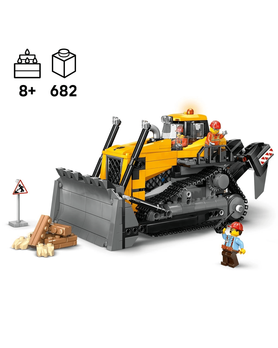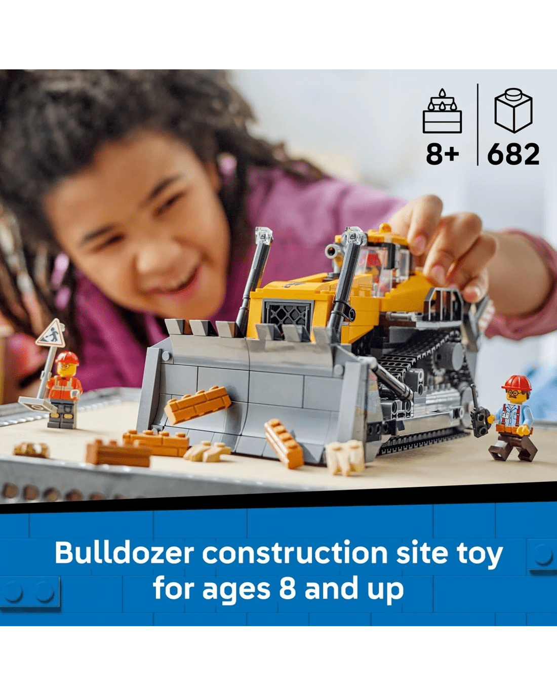 - What's in the box? - This LEGO City construction vehicle set includes a toy bulldozer, plus a driver and 2 worker minifigures