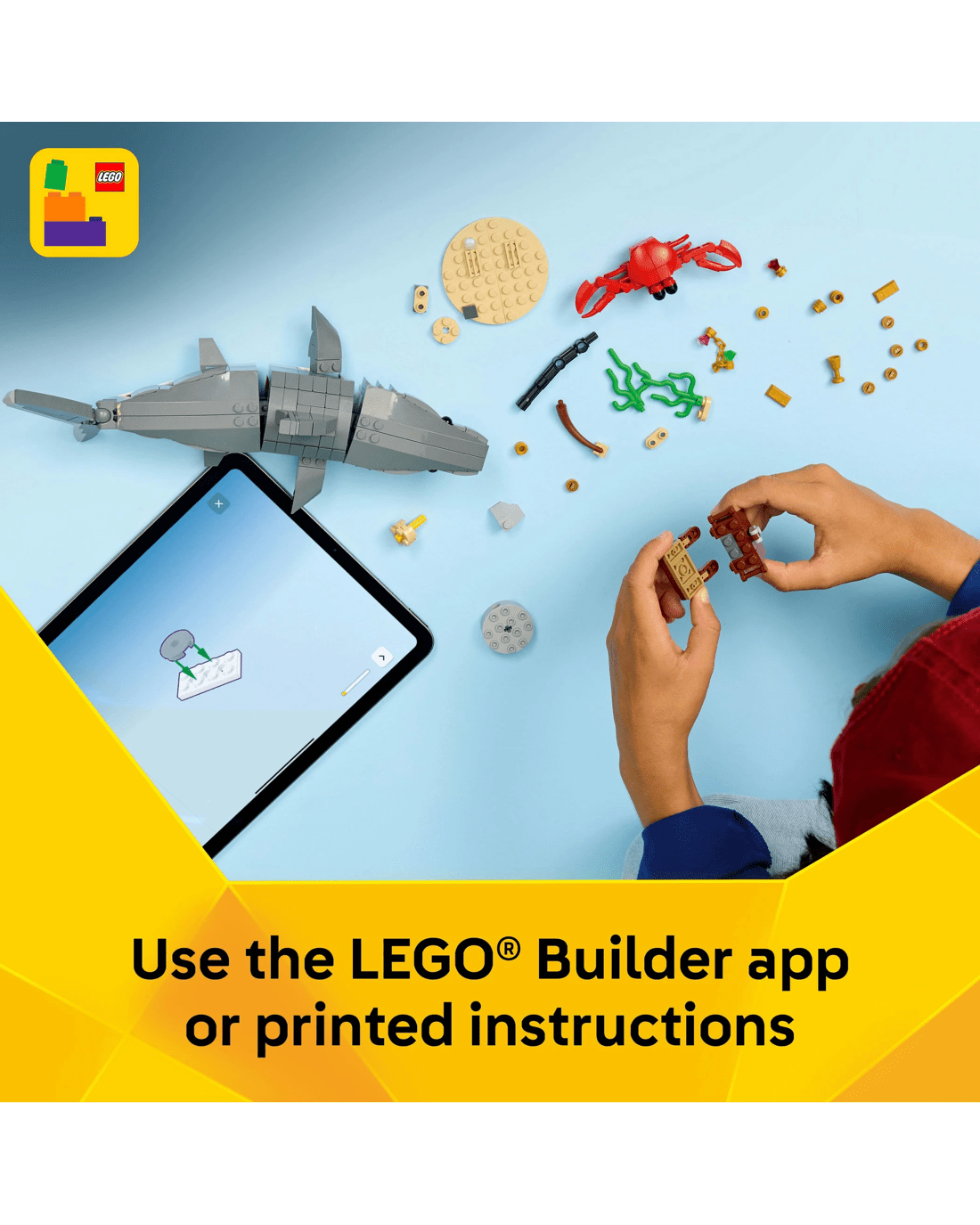 This LEGO Creator 3 in 1 set will inspire young imaginations and makes a great gift idea for kids who love sea animals. And with the LEGO Builder app, they can also experience a building adventure. They can zoom in and rotate their sets using 3D building instructions, track their progress and save sets in one place. Please note models cannot be built simultaneously. Set contains 379 pieces.