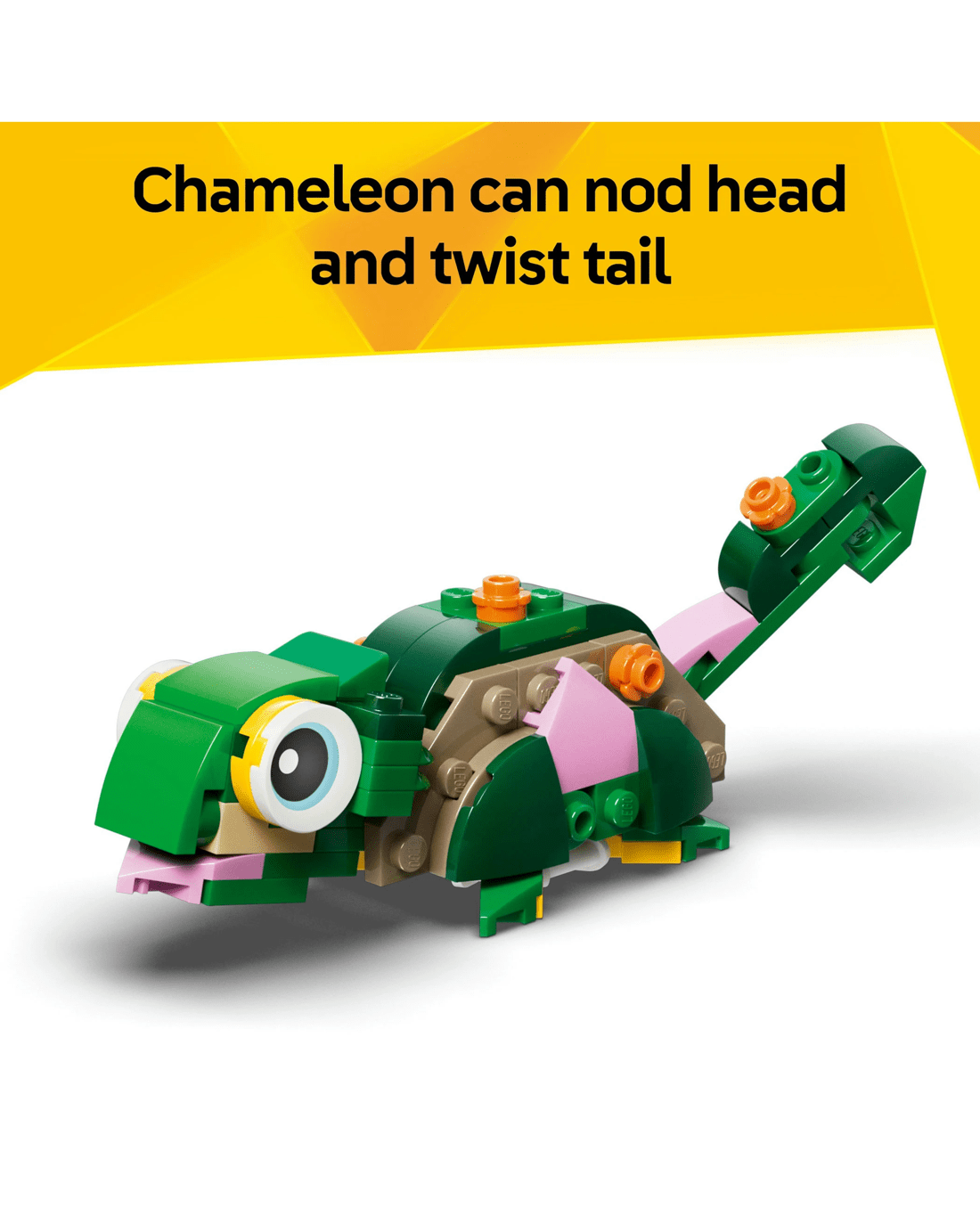 Kids can choose to build a turtle toy with a posable head and mouth, which comes with a beautiful pink water lily flower. This can then be rebuilt into a chameleon lizard toy with a posable head and tail, or a frog toy with a moving mouth. Once playtime is over, each model can be displayed as fun room decor.