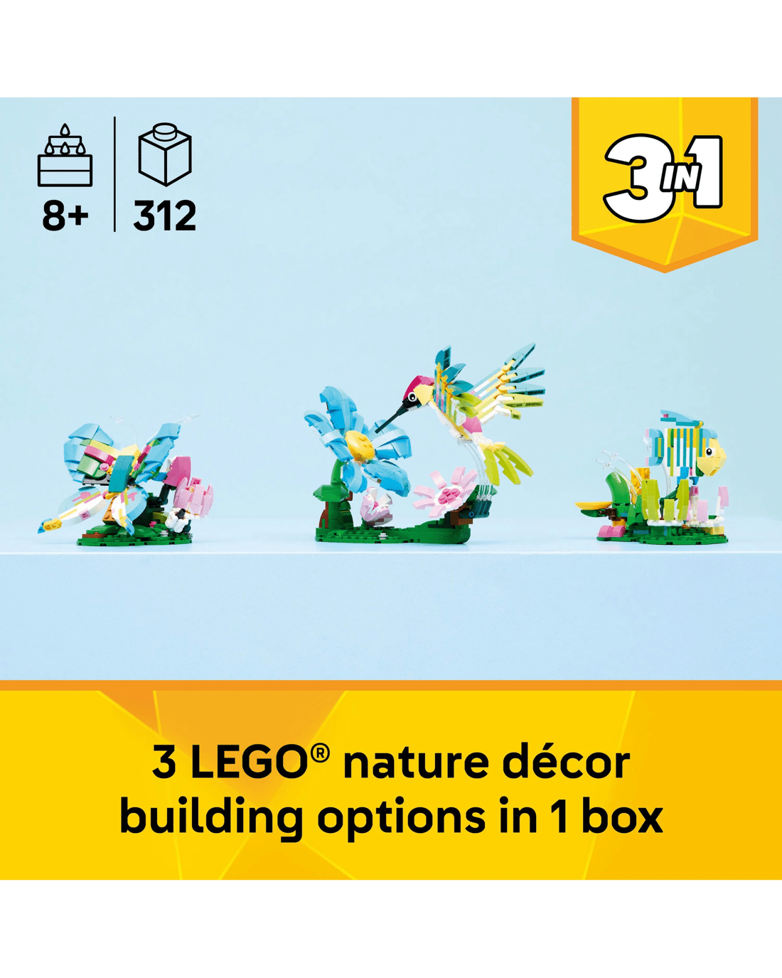 - 3 in 1 Nature Decor - LEGO Creator 3 in 1 Wild Animals: Colourful Hummingbird building toy lets boys, girls and kids build and rebuild 3 animal figures on stands with the same bricks