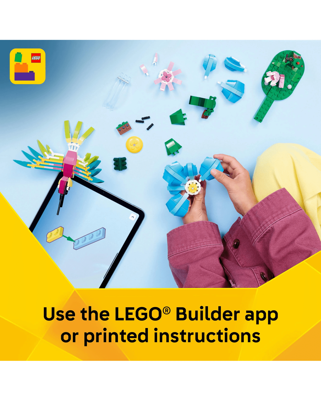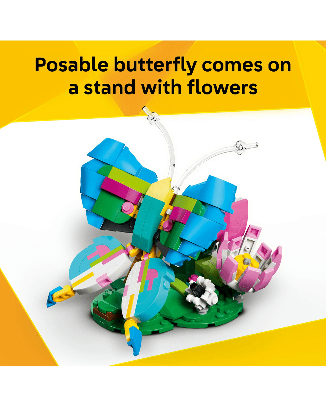 - Posable Lego Animals - The hummingbird is in a dynamic flying pose and can move its neck, wings and tail, while the butterfly can move its wings