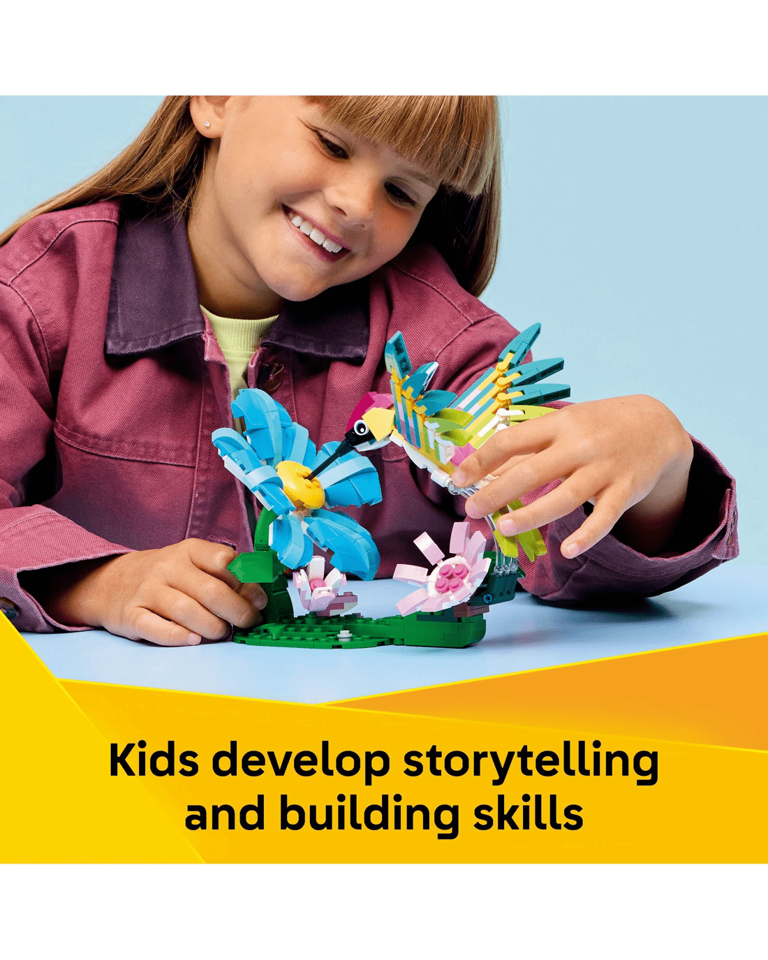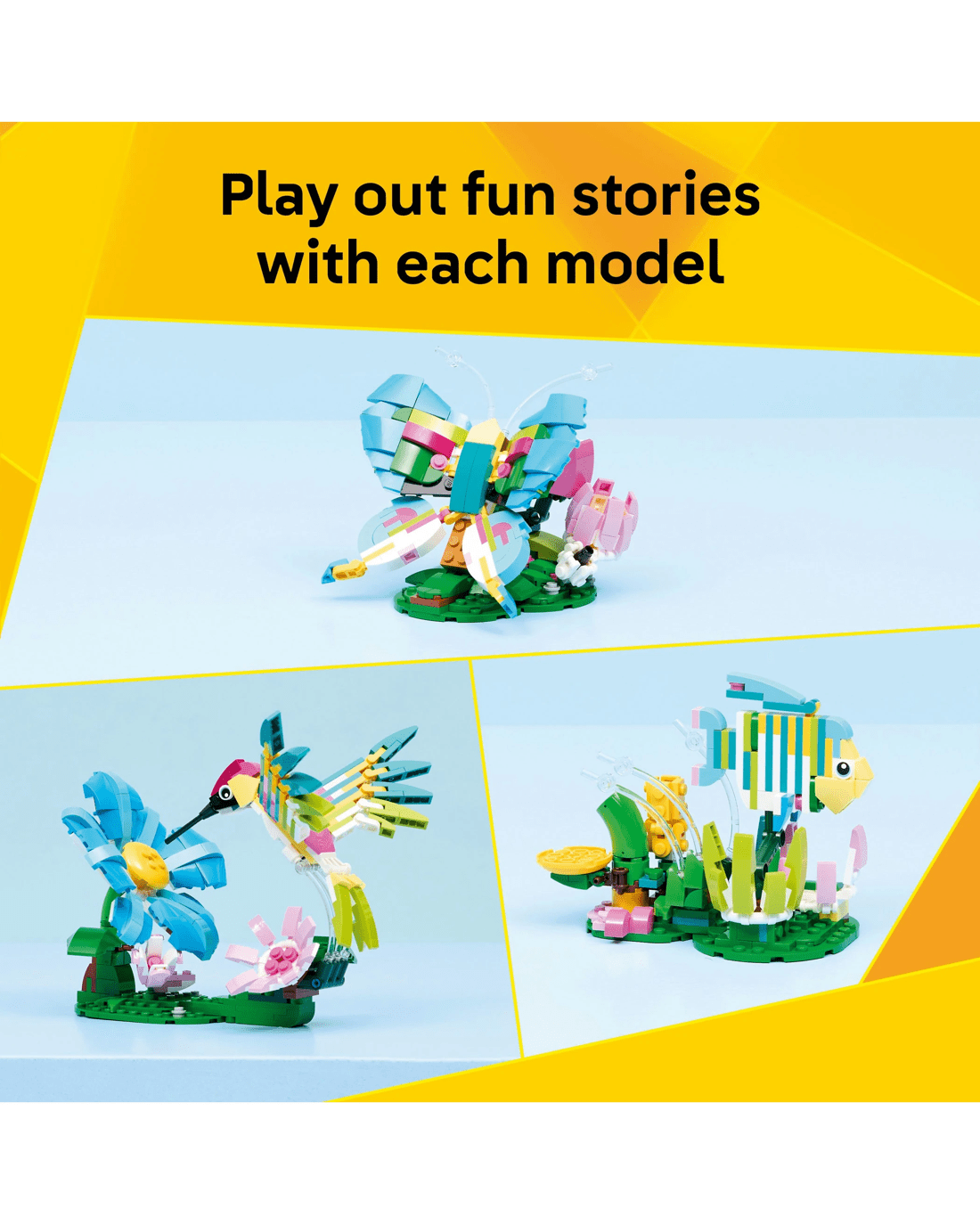 - Endless Pretend-play Options - Kids can enjoy fun-filled stories with 3 animal toys (models cannot be built simultaneously): a hummingbird, butterfly or tropical fish