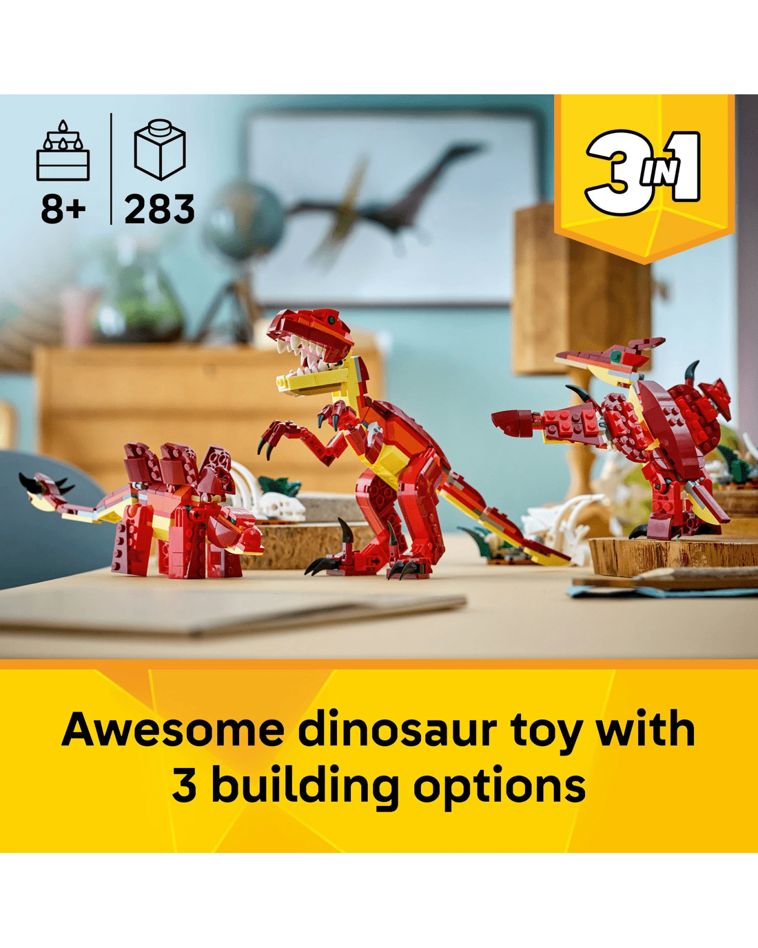 - 3 IN 1 Dinosaur Toy - LEGO Creator 3 in 1 Fierce Dinosaur building set lets boys, girls and kids aged 8+ get creative as they build and rebuild 3 dinosaur toys with the same bricks