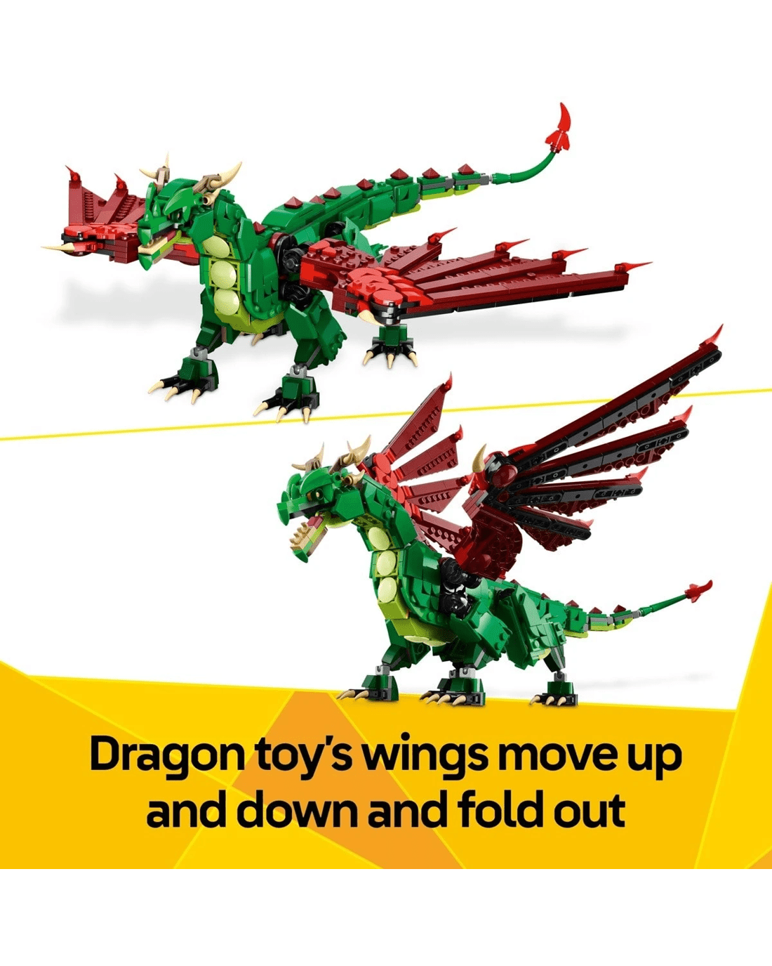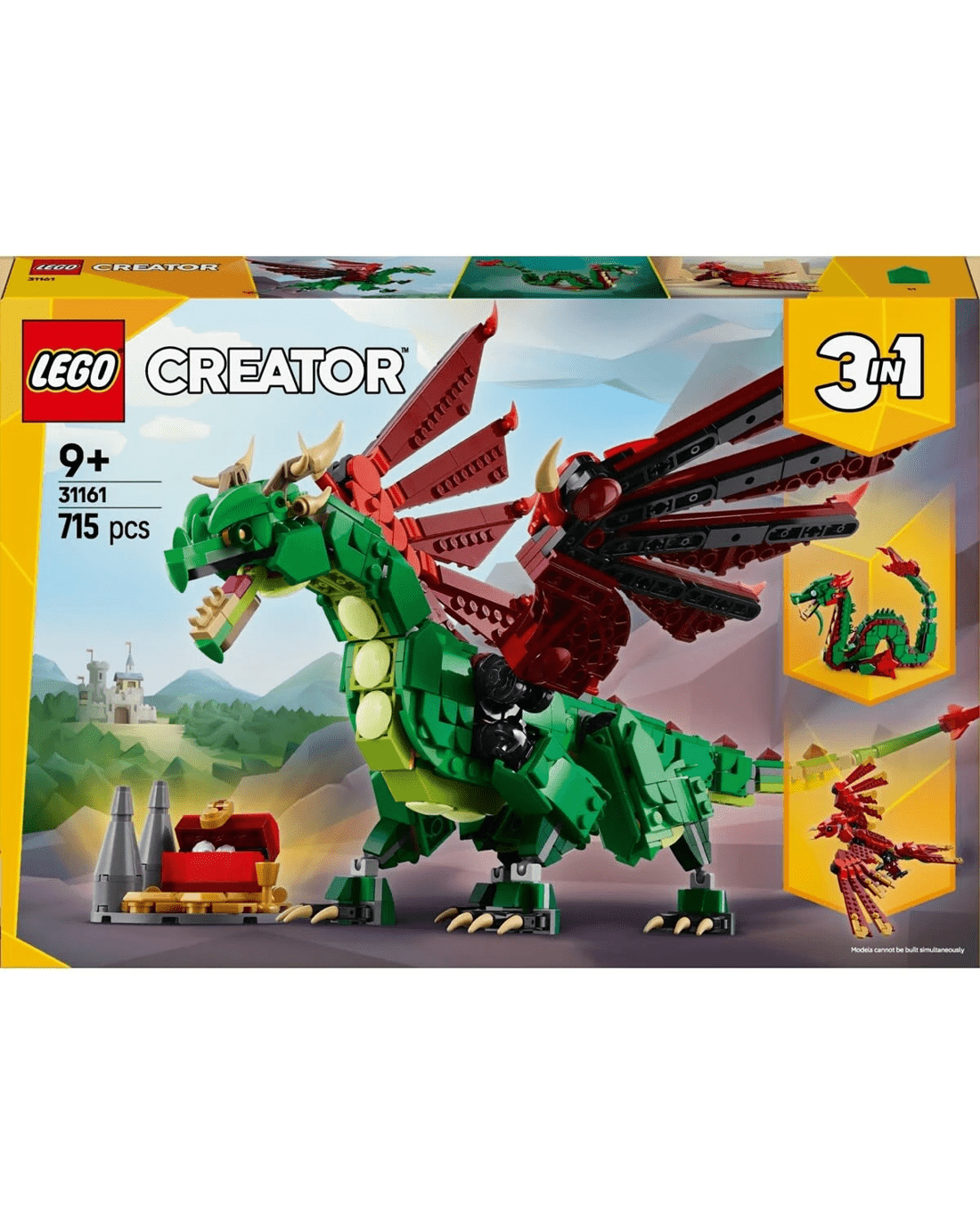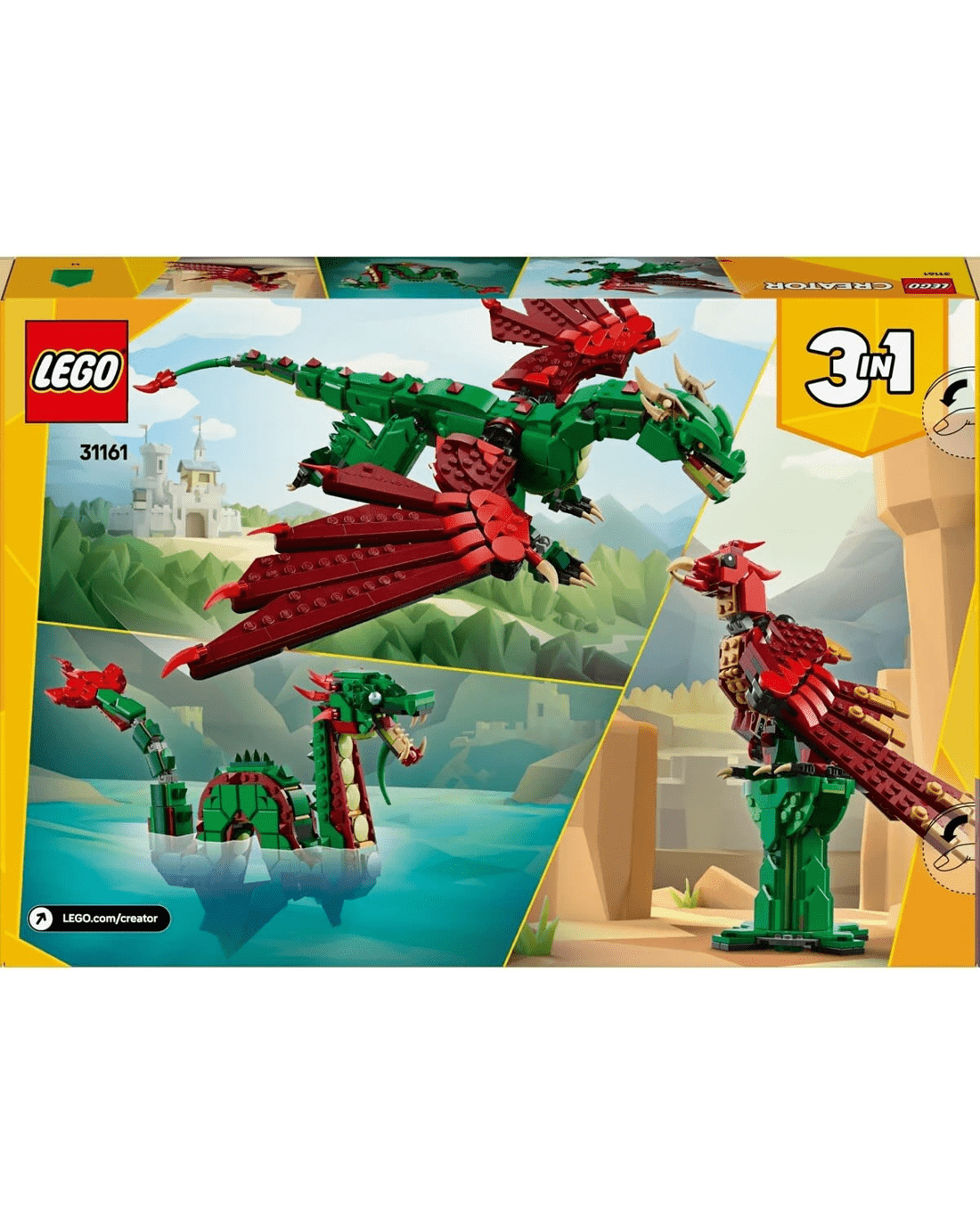 - 3 medieval creature toys in 1 box - The LEGO Creator 3-in-1 Medieval Dragon toy lets boys and girls build and rebuild 3 different fantasy animal toys using the same bricks