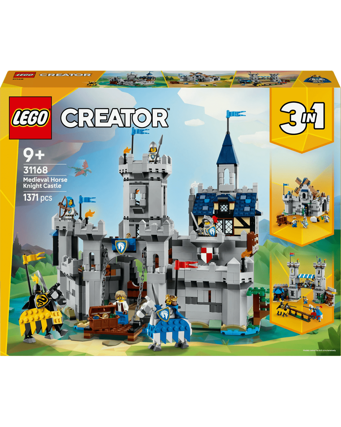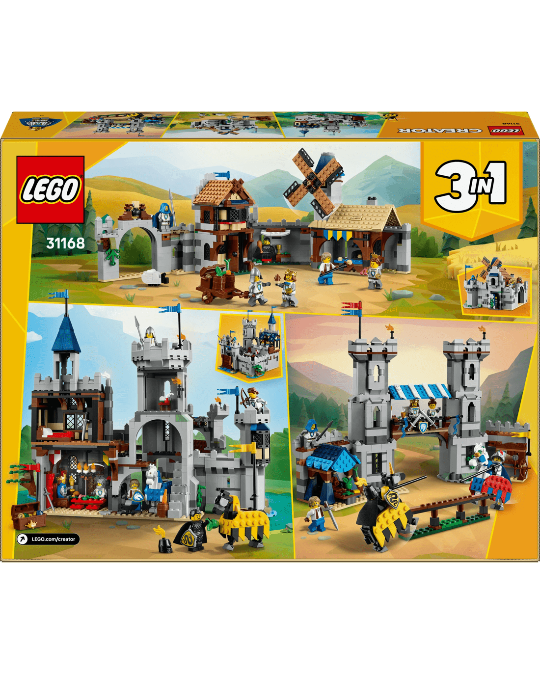 - 3 medieval toy building options in 1 box - The LEGO Creator 3-in-1 Medieval Horse Knight Castle playset building toy lets kids build and rebuild 3 different detailed models using the same bricks