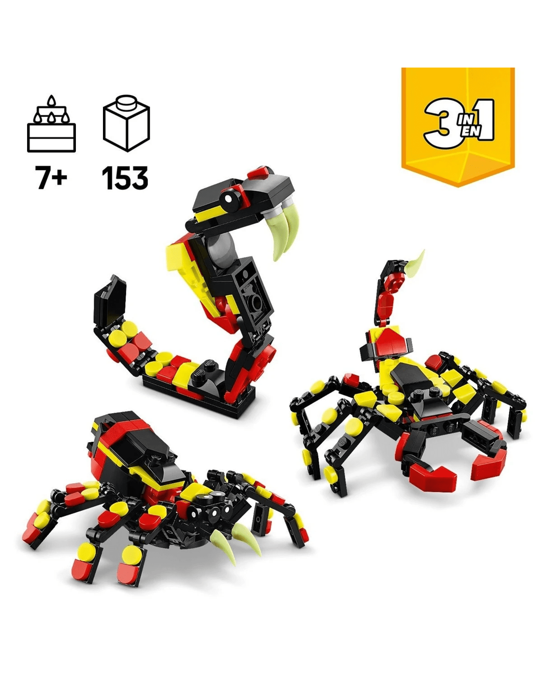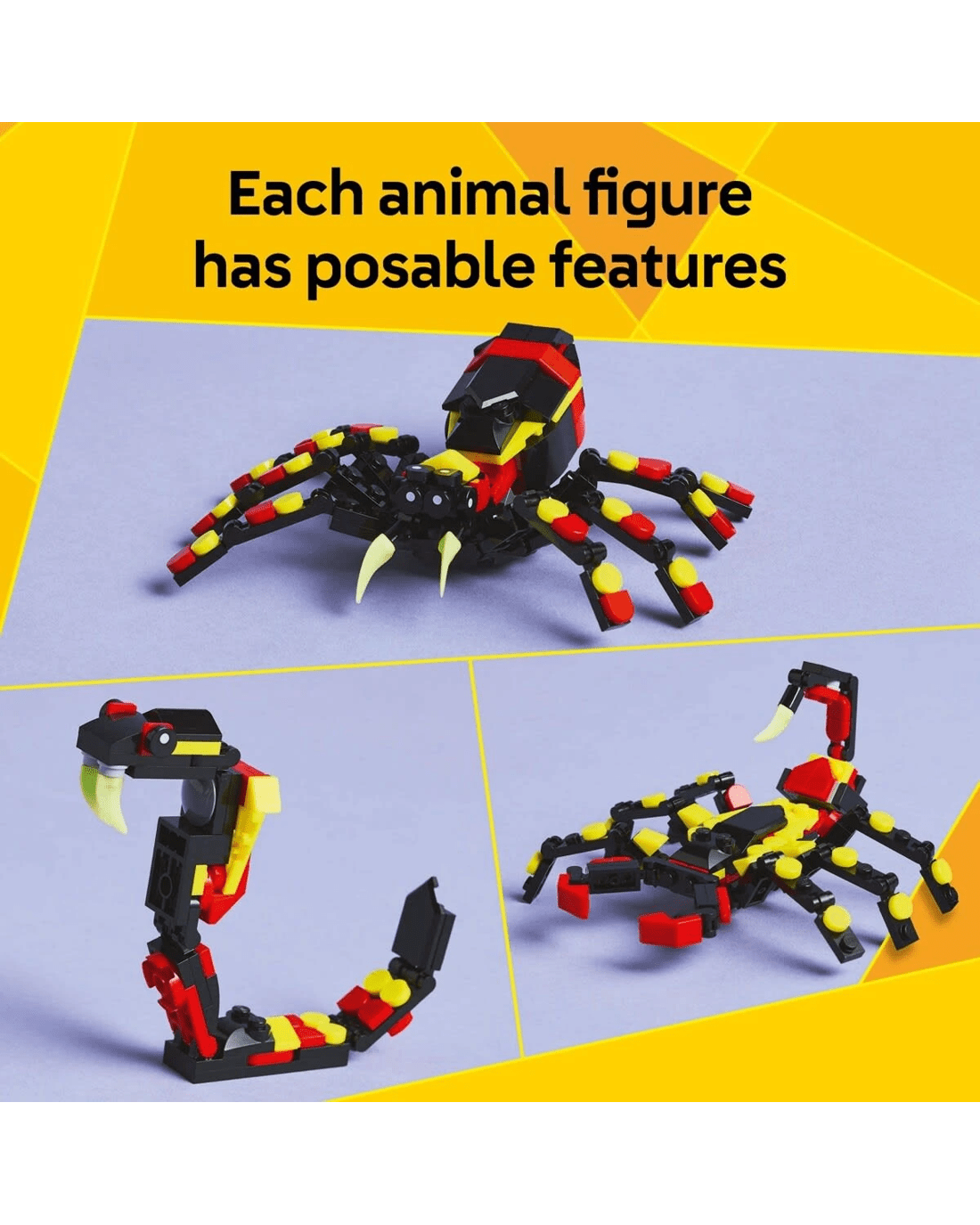 - Endless play options - Kids can role-play stories with 3 different animal models (models cannot be built simultaneously): a spider toy, a scorpion figure or a snake toy