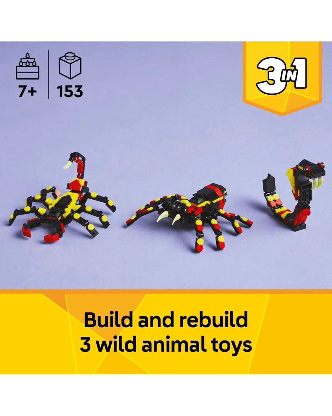 - 3 wild animals in 1 box - The LEGO Creator Wild Animals: Surprising Spider toy lets kids build and rebuild 3 different animal figures with the same bricks