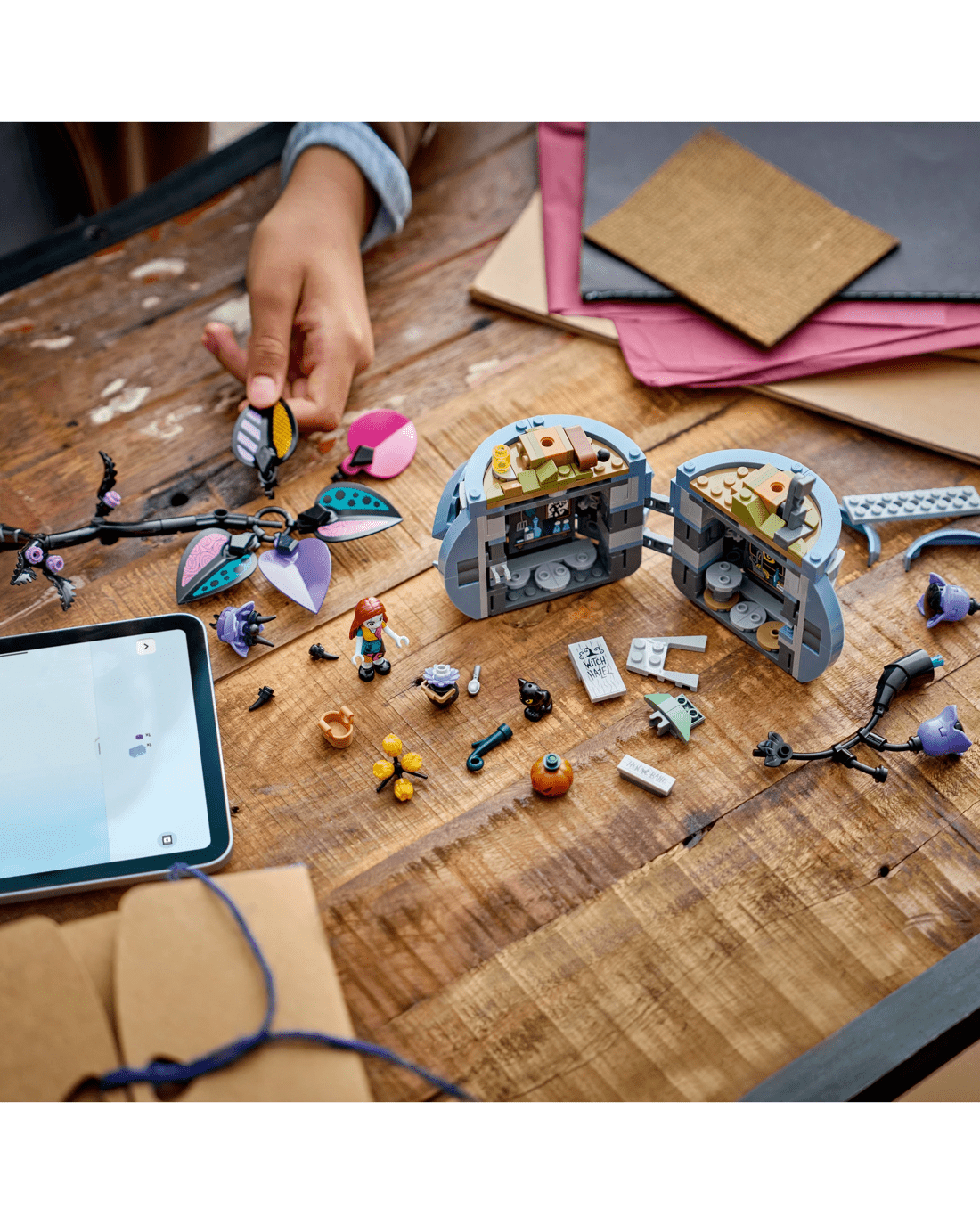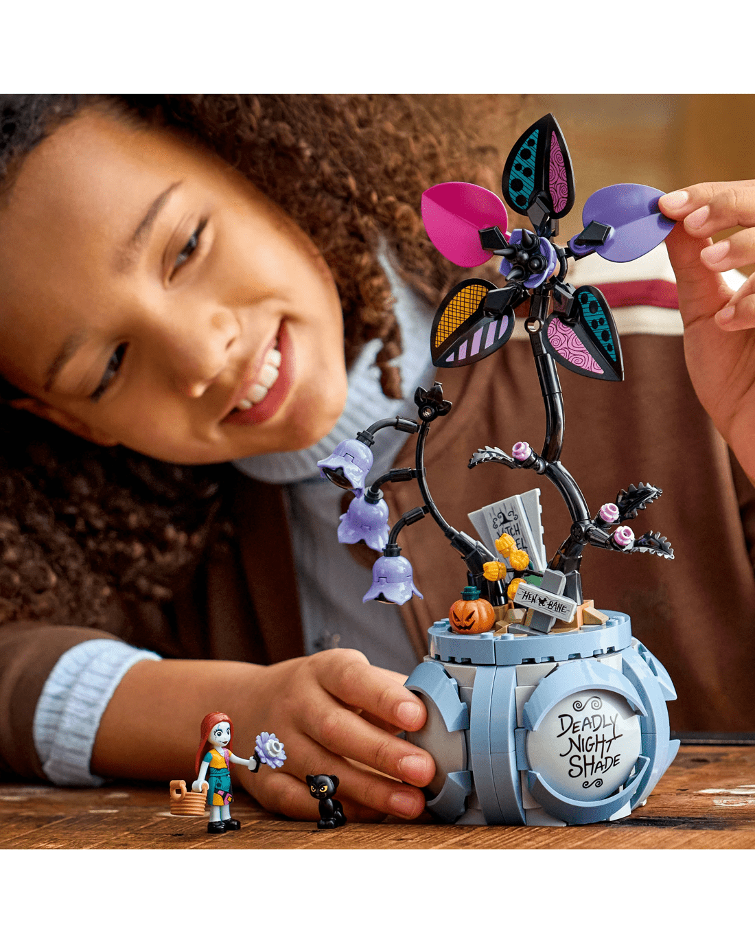 Surprises await kids aged in this LEGO Disney Sally’s Flowerpot building toy. This flower building set, inspired by Tim Burton’s The Nightmare Before Christmas, sparks play with two LEGO Disney characters: Sally and a little black cat. There’s a flowerpot with two brick-built flowers, hidden rooms and graphic stickers inside and out. The interior space also includes a basket, cauldron, buildable table and much more. The characters can fit inside for storage after play.