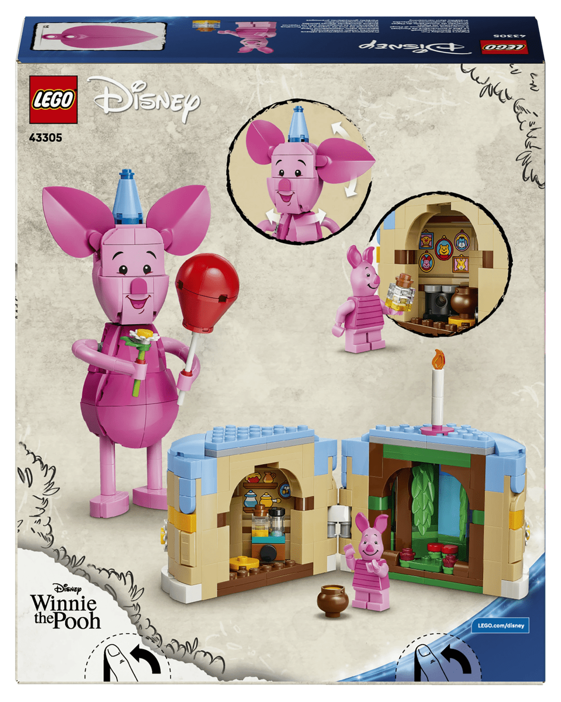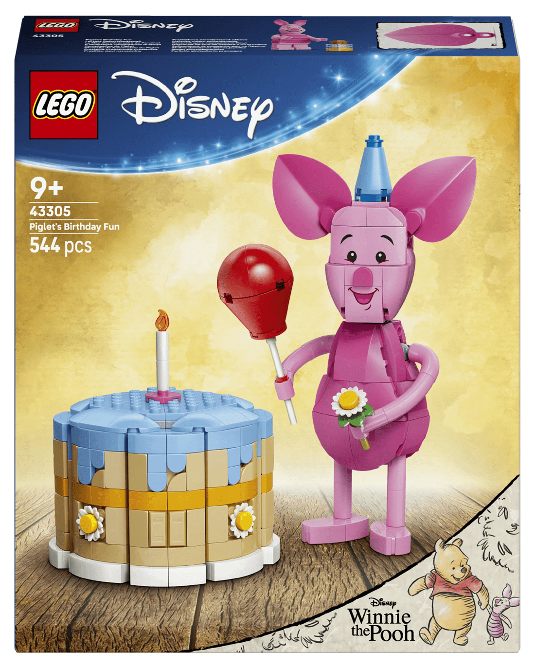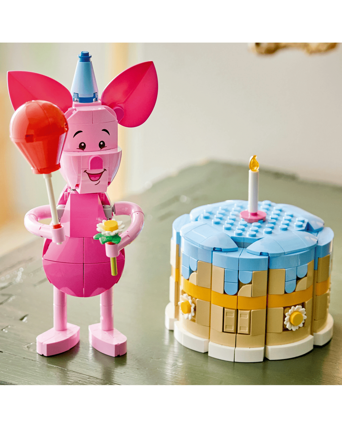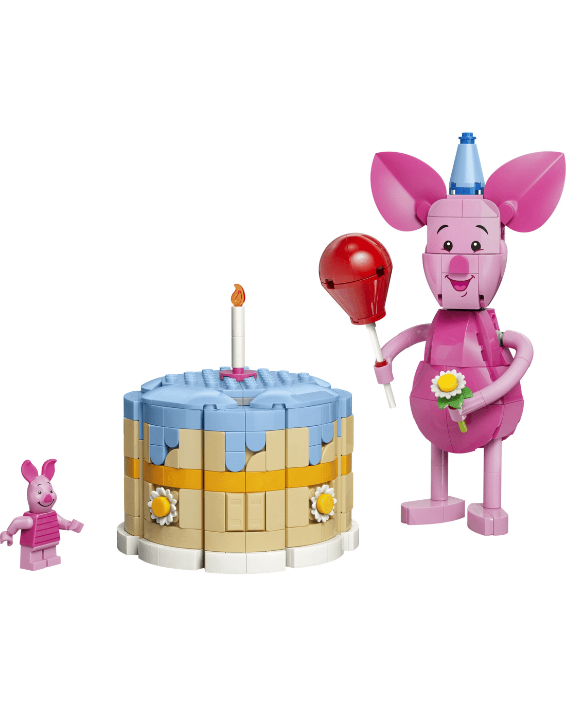 - Beloved Companion - This up-scaled Piglet’s Birthday Fun toy building set presents the Disney character, along with a birthday cake with candle, a LEGO Disney Piglet minifigure and more