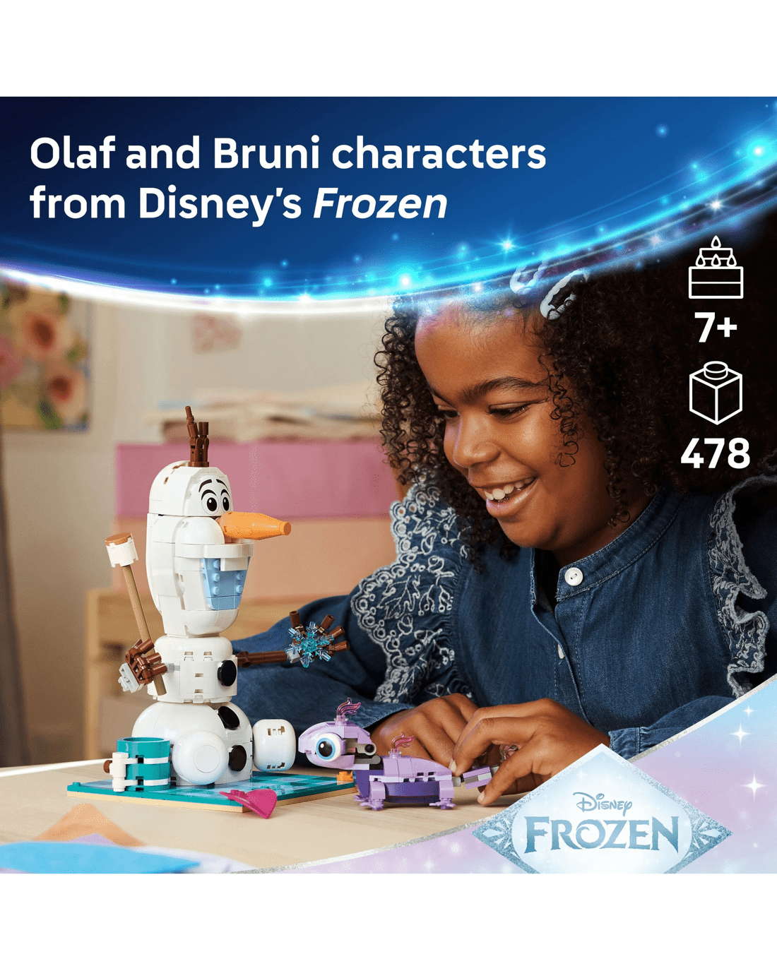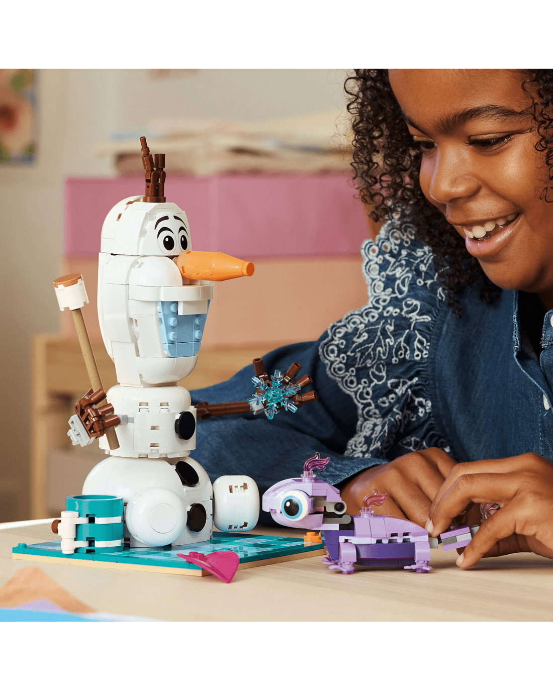 Toy building set with LEGO Disney Olaf and Bruni characters