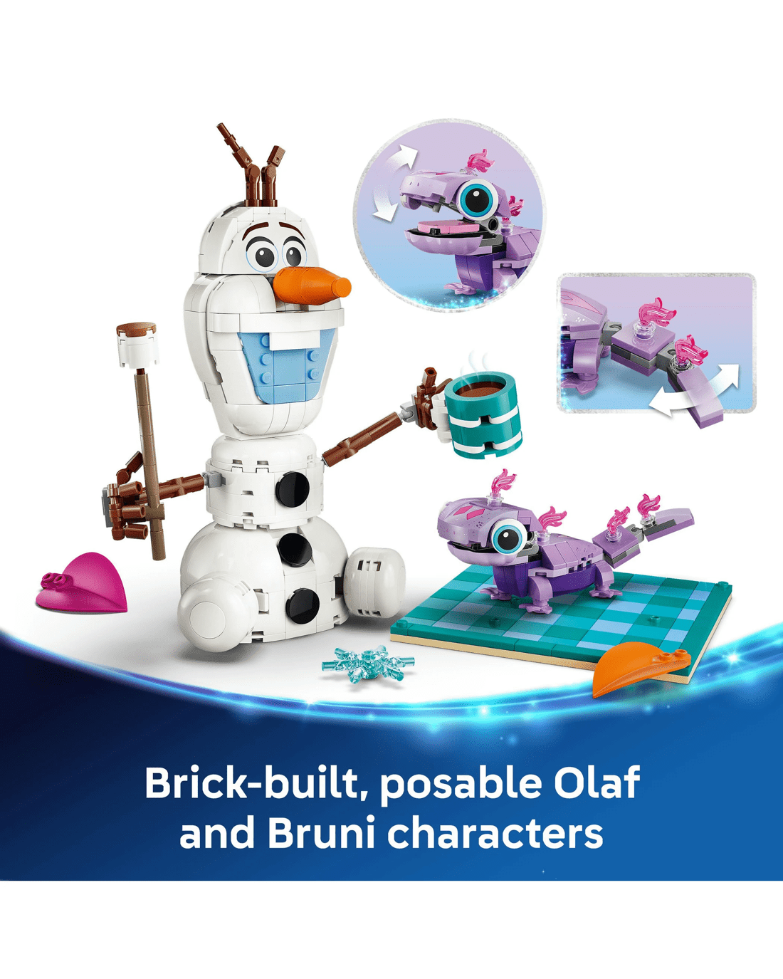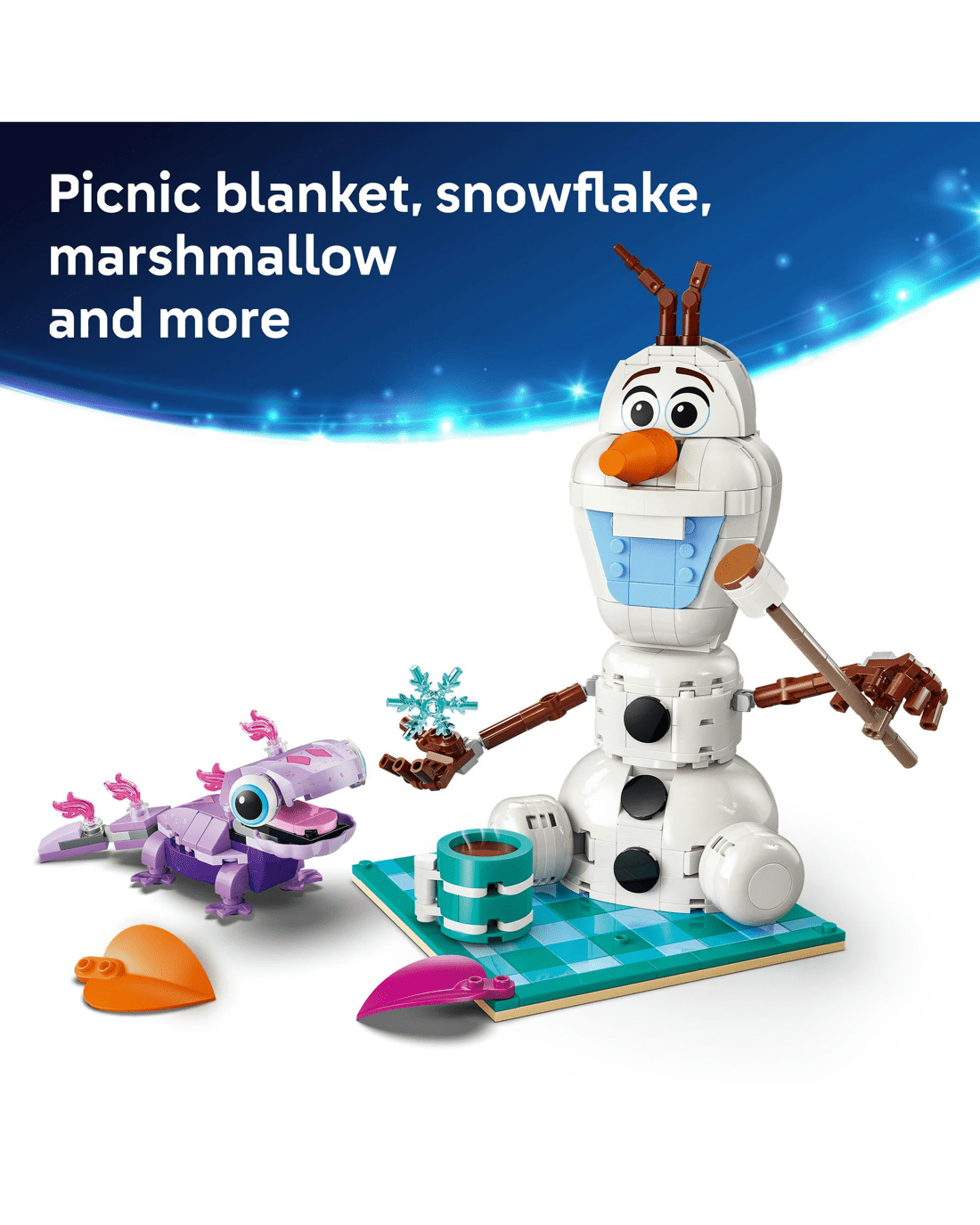 - Buildable Lego Snowman Toy - This engaging Olaf and Bruni's Picnic Fun snowman toy building set features LEGO Disney Frozen characters Olaf and Bruni, a colourful picnic blanket and more