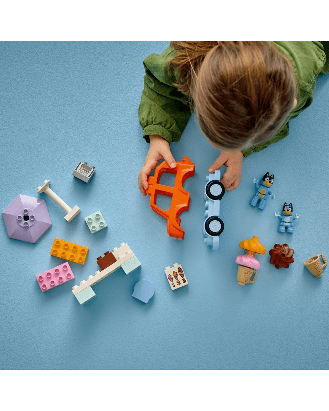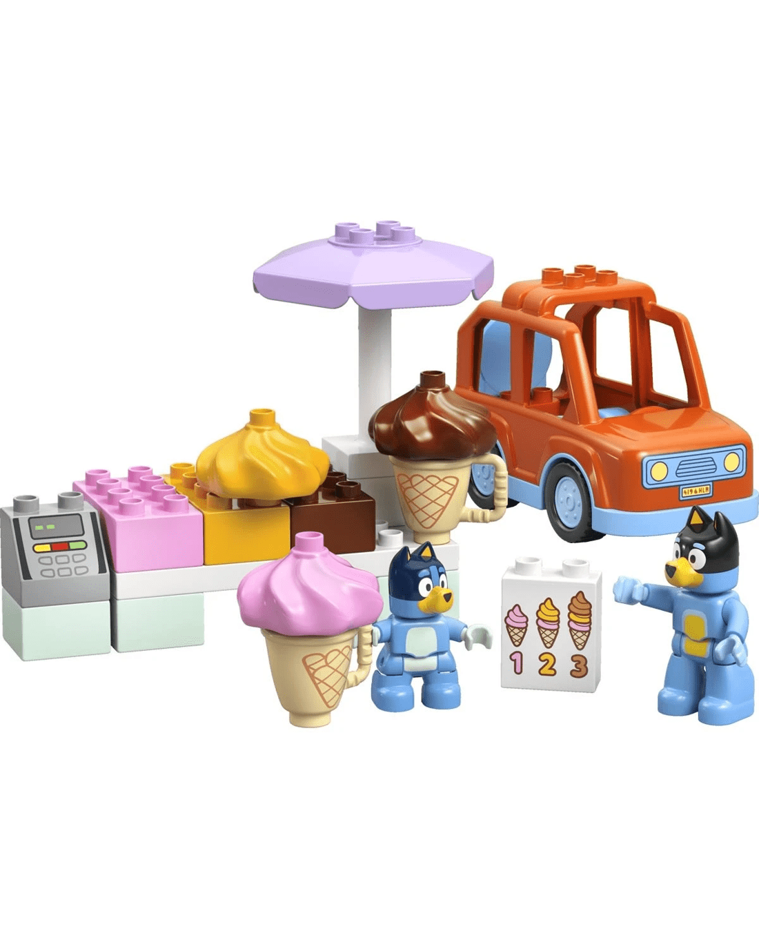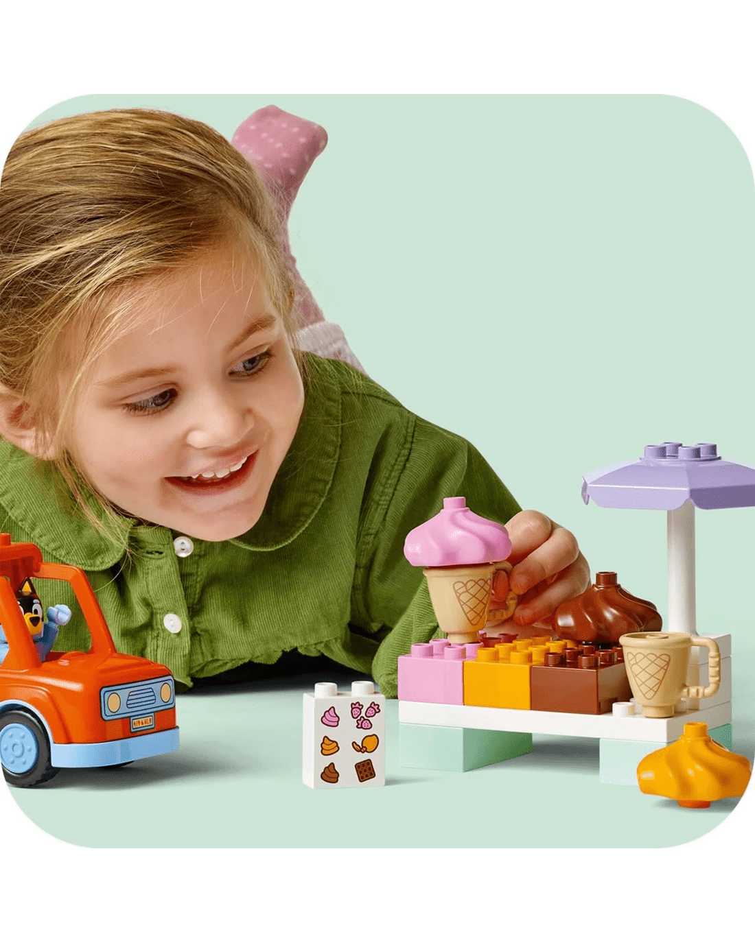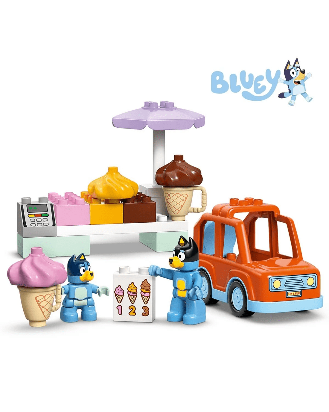 - Ice cream stand and vehicle playset inspired by the Bluey TV show - Transport preschoolers to the fun world of the Heeler family with the LEGO DUPLO Bluey Ice Cream Trip with Bluey toddler toy