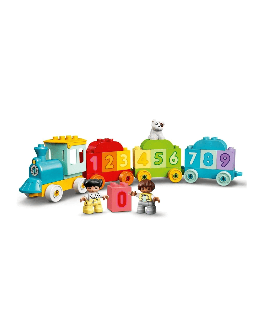 - Includes 10 number bricks carried in the push-along train's carriages, plus boy, girl and dog LEGO DUPLO figures to inspire imaginative role play.