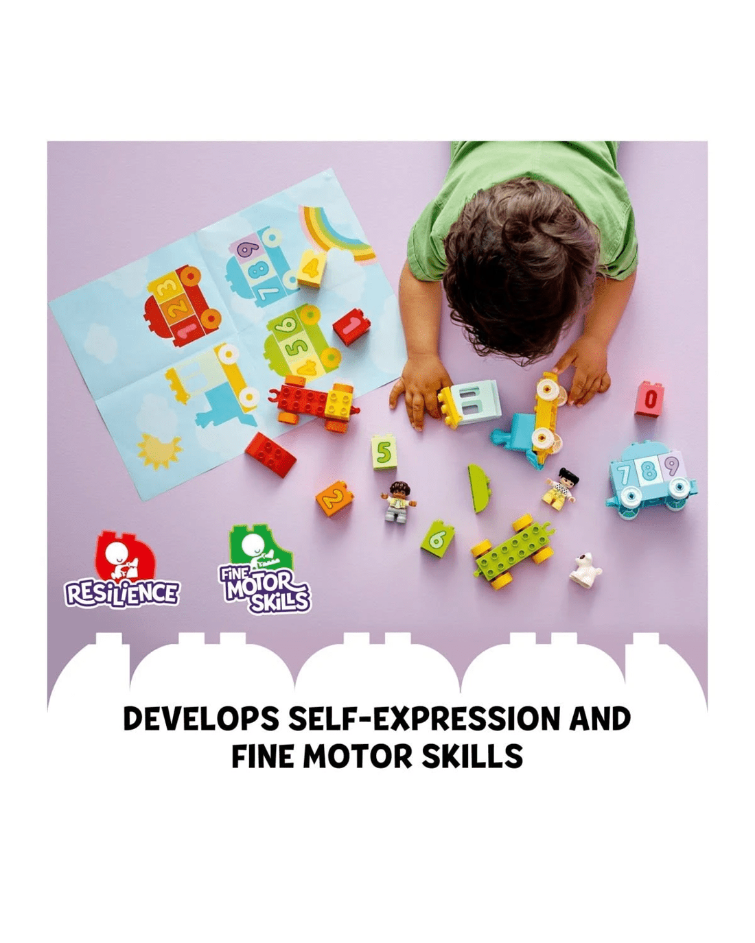 - Toddlers improve their fine motor skills as they drive the train then load, unload, stack and sort the number bricks. As children explore play possibilities, they also discover colours and numbers.