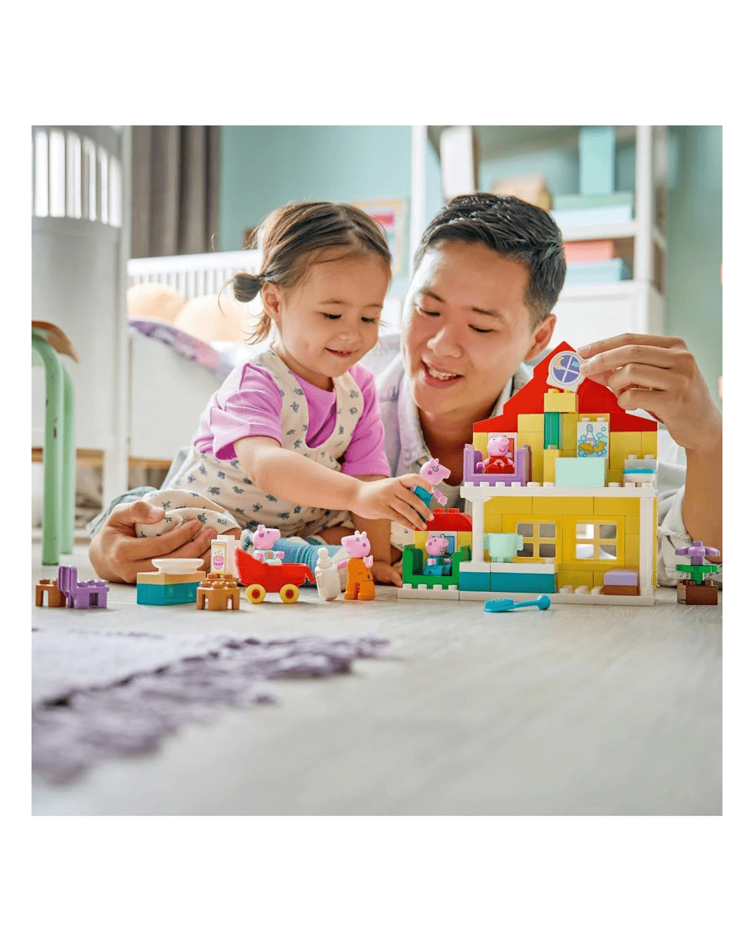 - Peppa Pig Toy - Toddlers explore the family's new home and meet Baby Evie, its latest arrival, with the Peppa Pig Family House building kit
