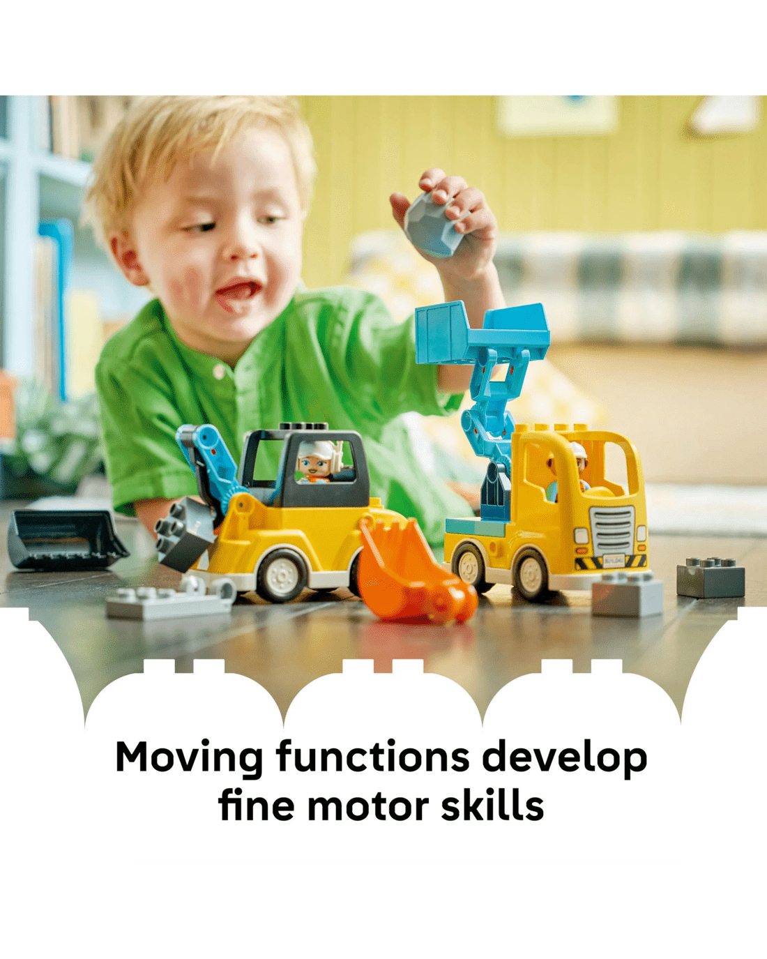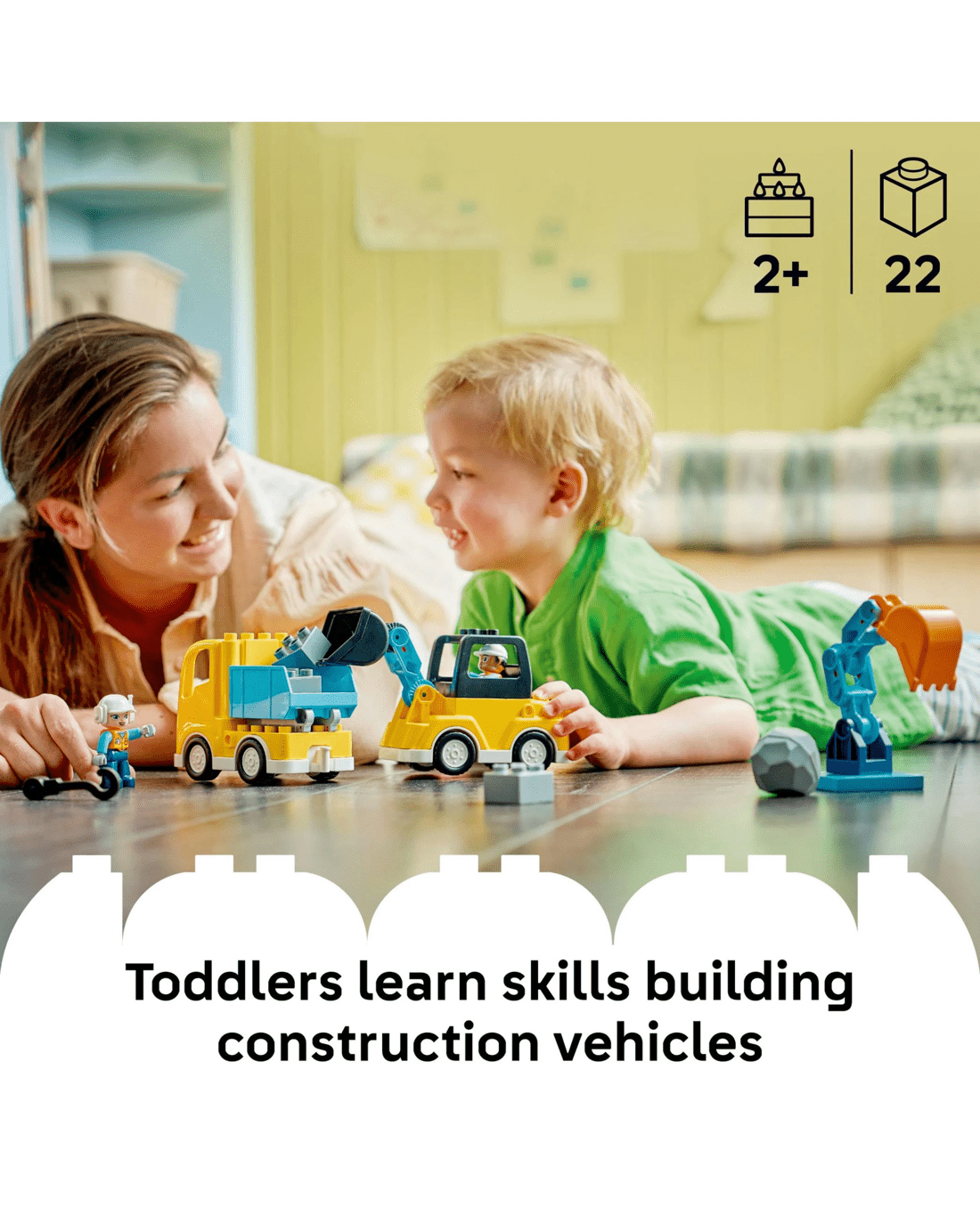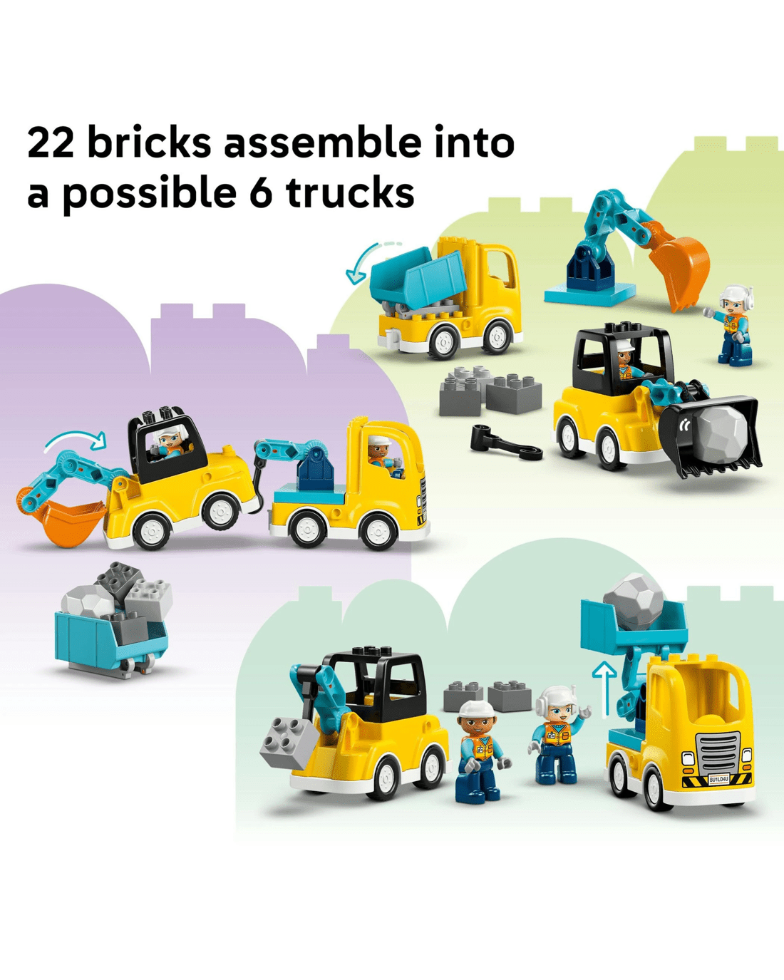 - Building Toys For Toddlers - Rev up young kids' creativity with the LEGO DUPLO Town 3 in 1 Construction Vehicles set, containing 22 bricks to assemble into 6 toddler truck toy building options