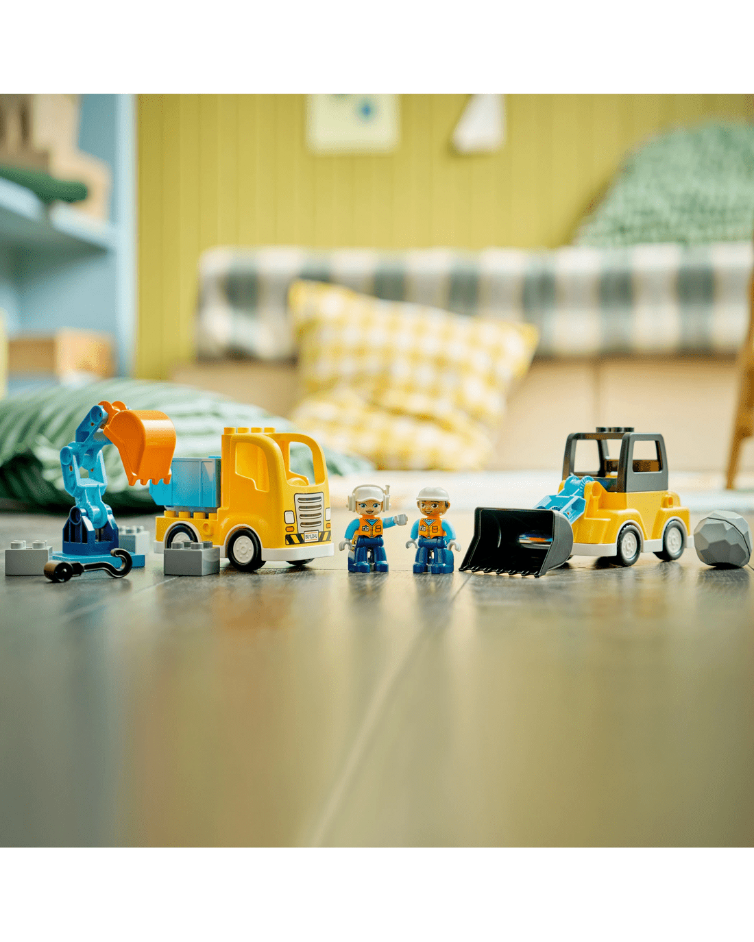 - 1 Set, 6 Vehicle Toys - This toddler LEGO DUPLO set's bricks assemble to make 2 tow trucks with different hooks, a loader, scissor lift, dumper truck or an excavator toy with a flexible arm