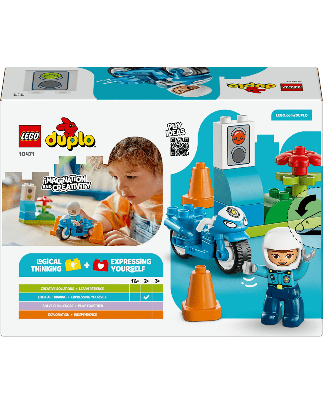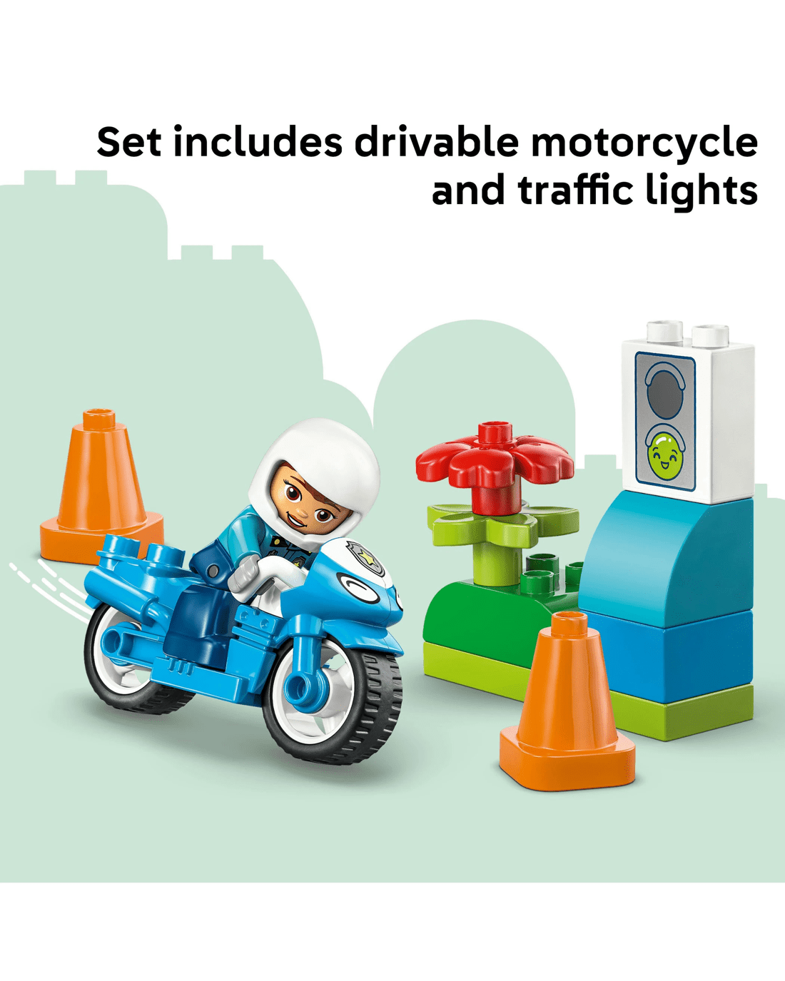 - Tested For Toddlers' Safety - All elements of this LEGO DUPLO police motorcycle toy are tested to the max to ensure they fulfil child safety standards