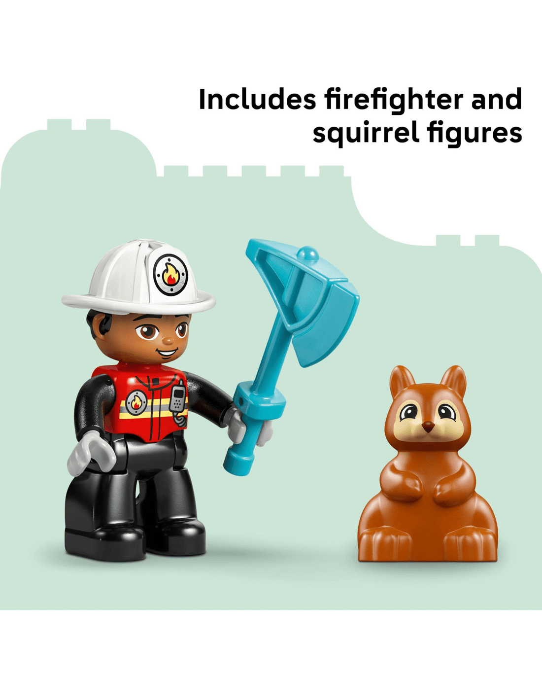 - Packed with Fun Features - Includes a fire engine model with detachable trailer, a firefighter figure, LEGO DUPLO squirrel, axe and wrench to encourage imaginative save-the-day play