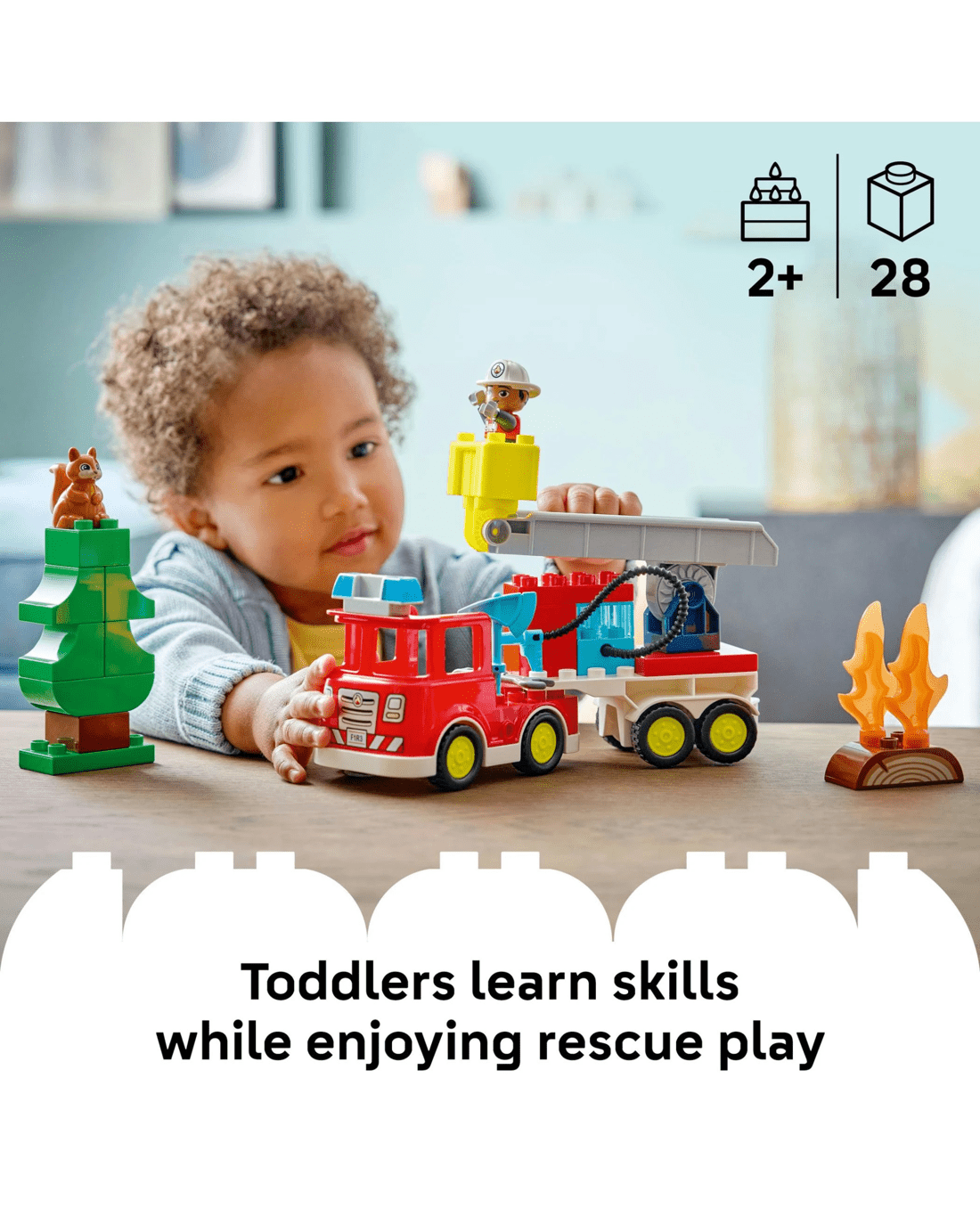 - LEGO DUPLO Firefighter Toy - This pretend-play toy lets toddlers imagine they're an everyday hero using the ladder to douse the burning log with the hose as a squirrel watches the action from afar