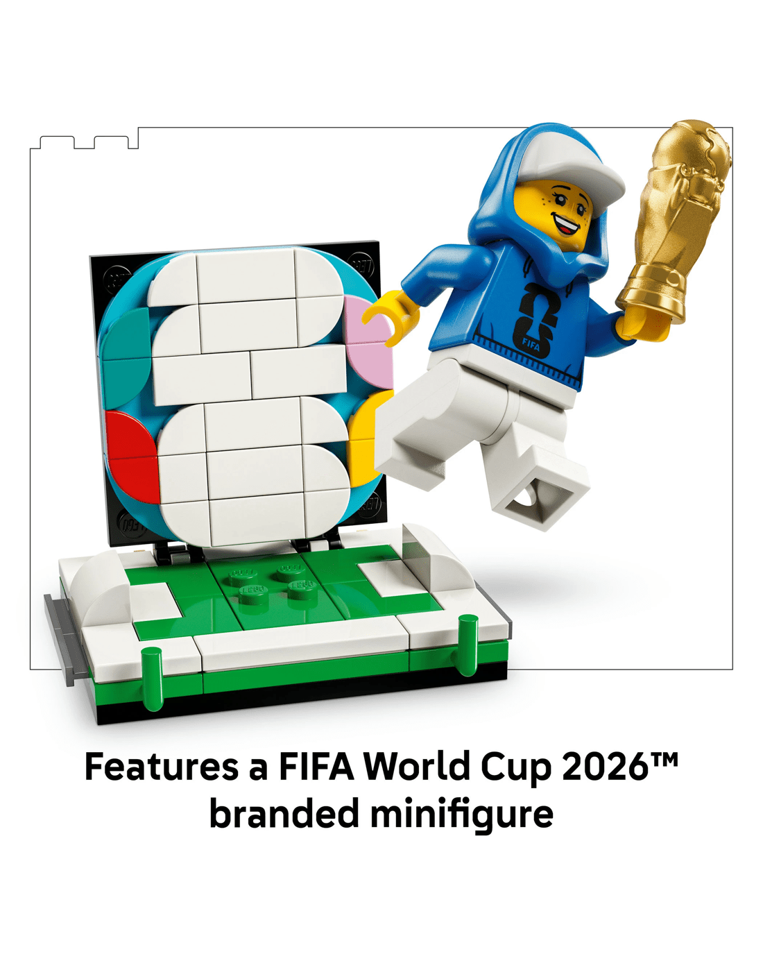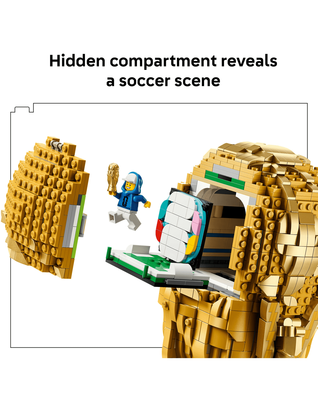 - Football Scene - There’s a hidden compartment in the upper globe section that reveals an exclusive FIFA World Cup 2026 branded minifigure holding a mini FIFA World Cup 2026 trophy