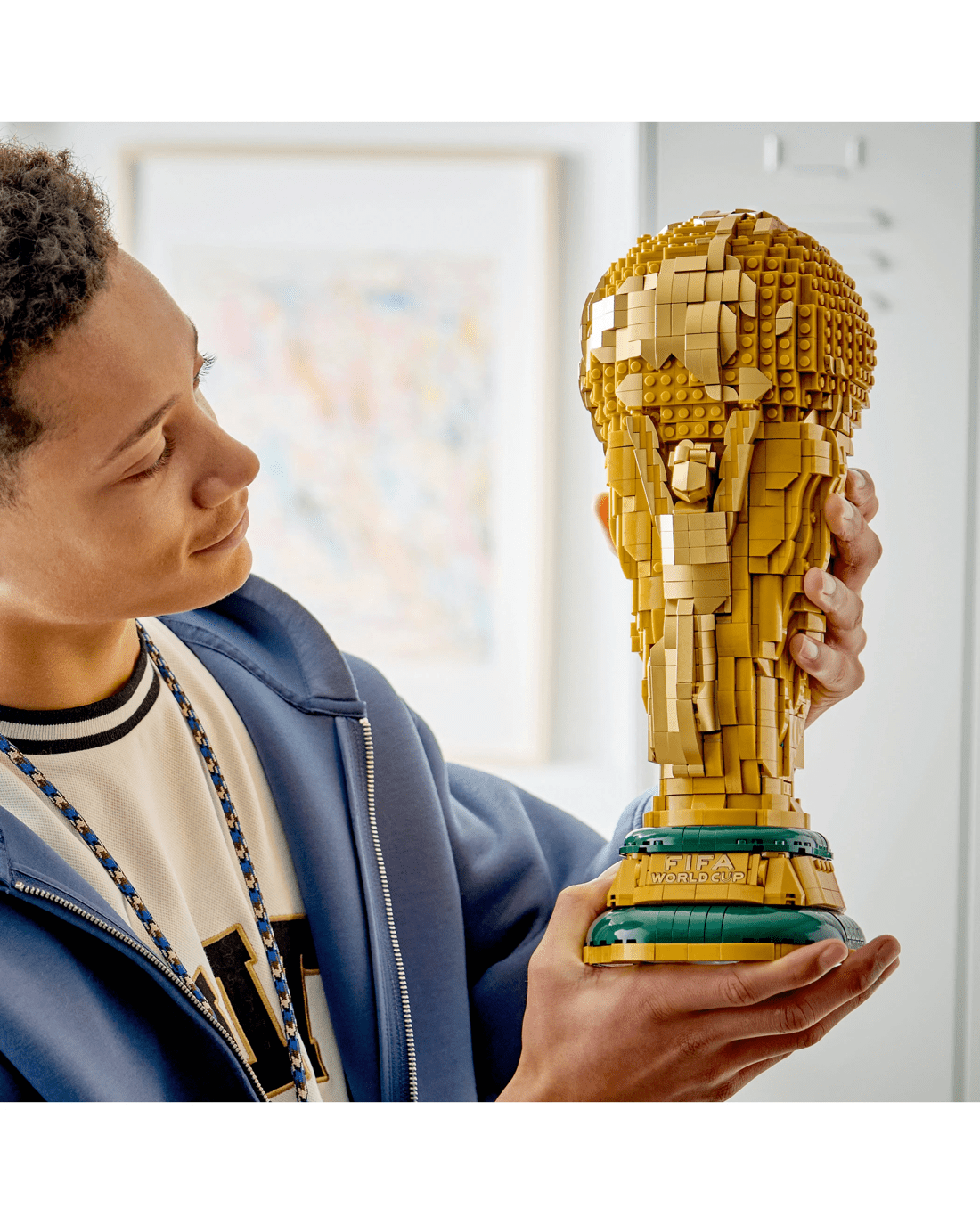 Create football decor with a LEGO World Cup Trophy set