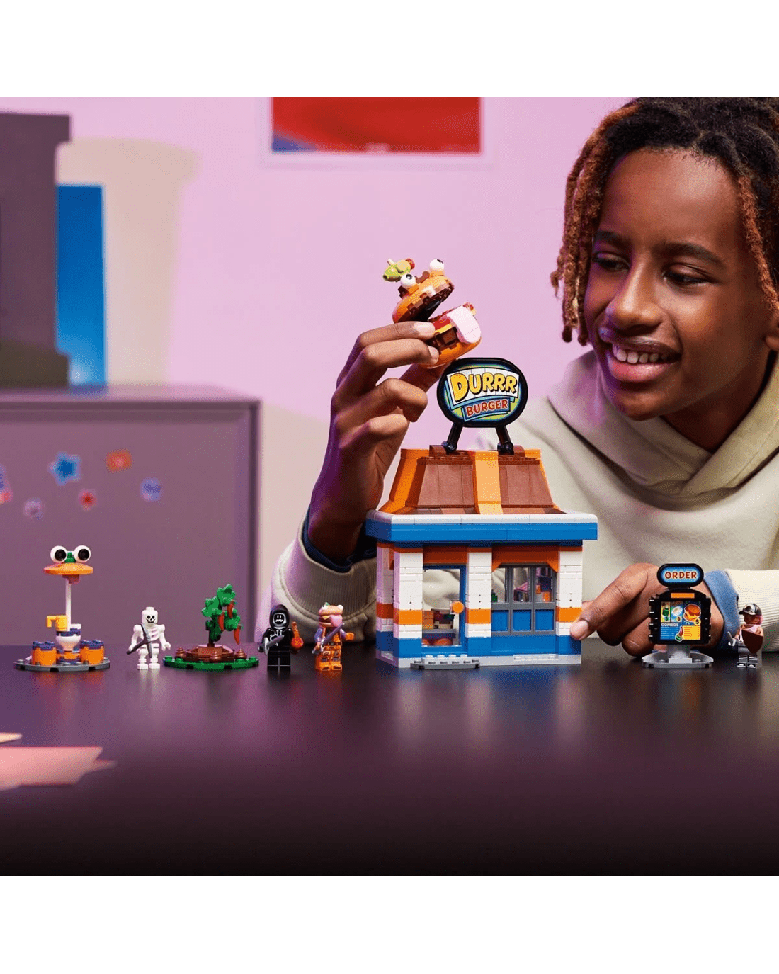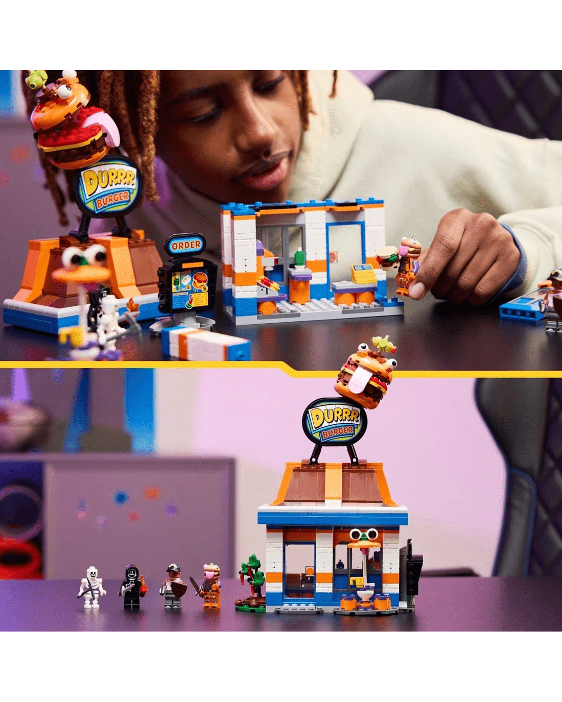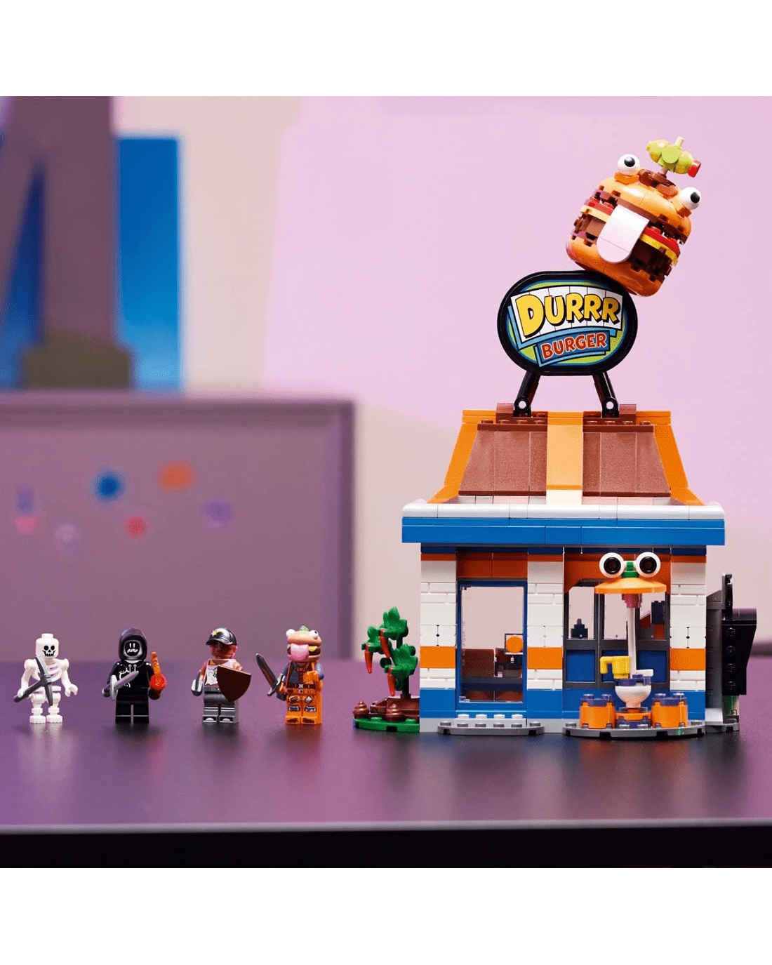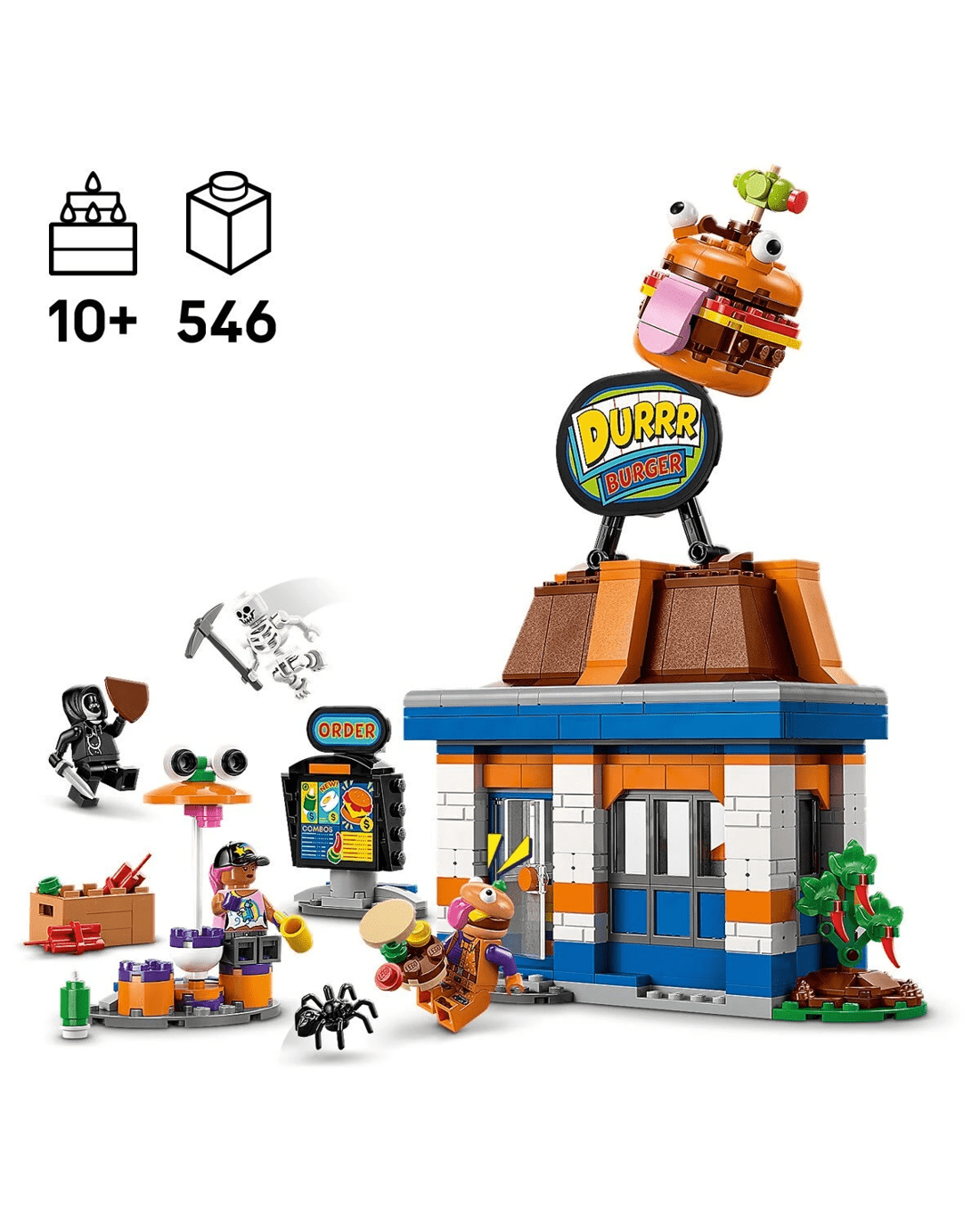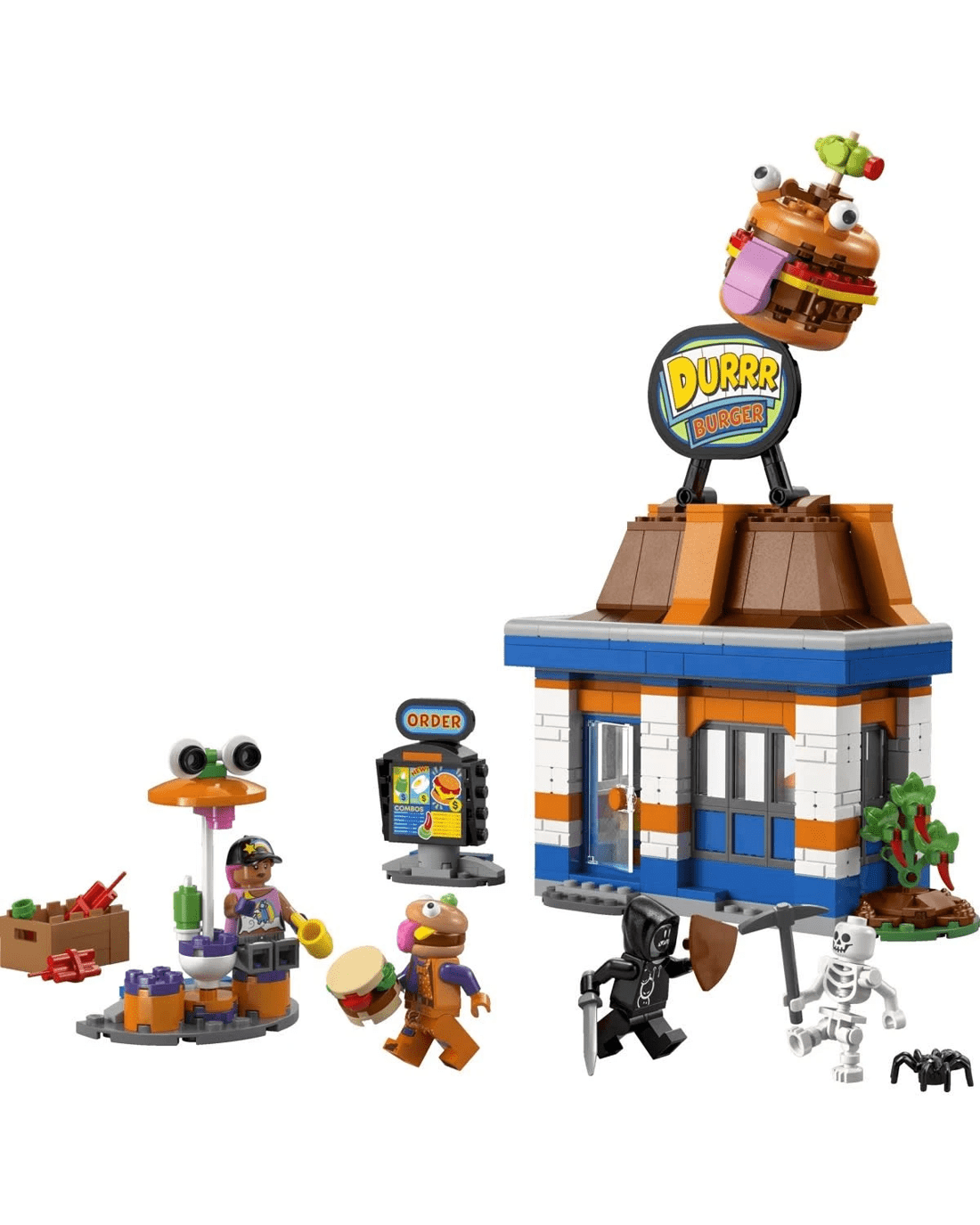 - Durrr Burger restaurant model - Feed imaginations with the LEGO Fortnite Durrr Burger Restaurant building set for kids