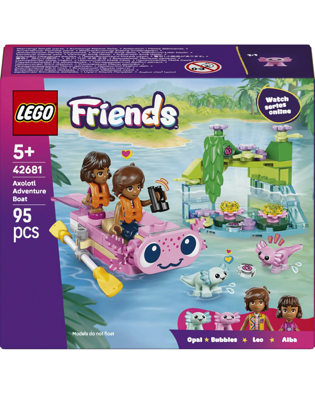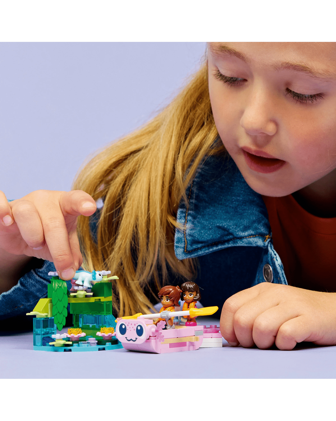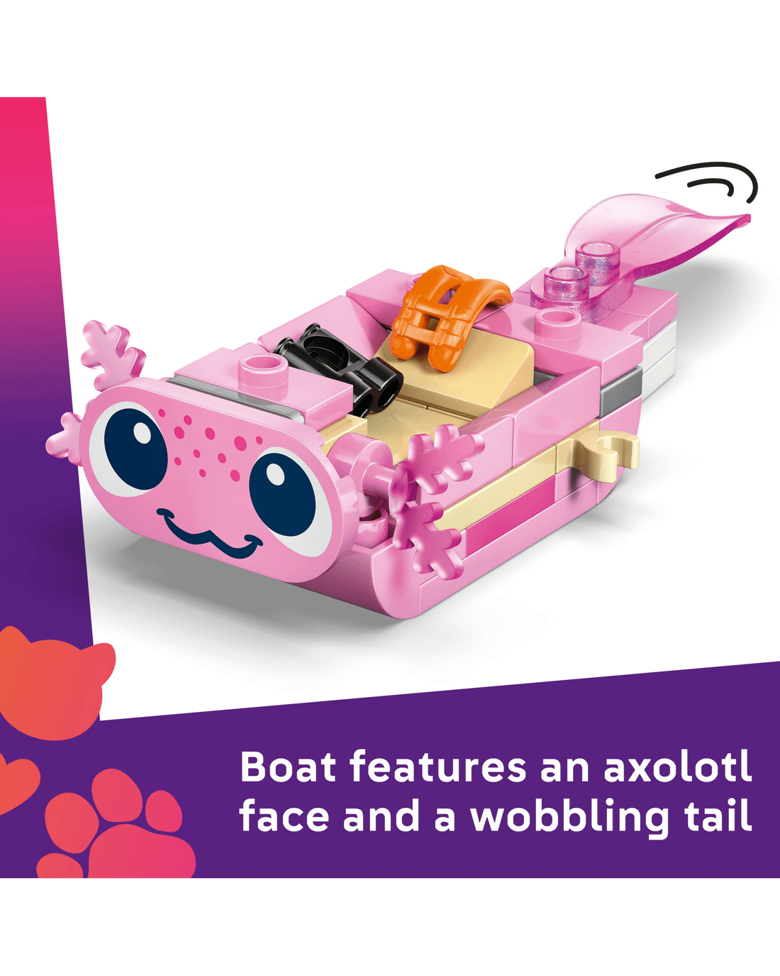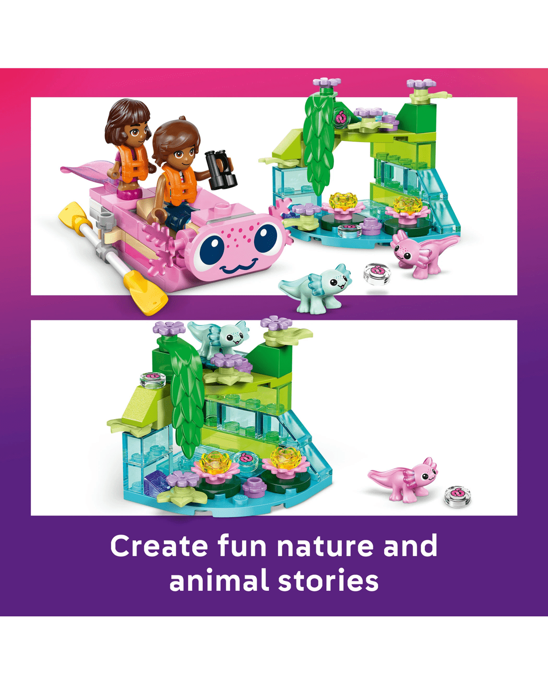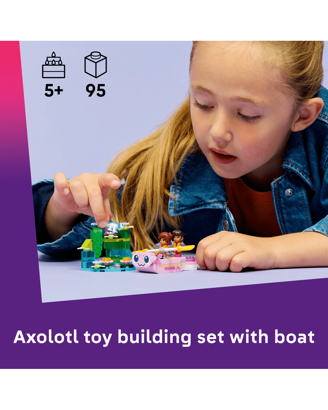 - Axolotl Toy Building Set - This kids' LEGO Friends Axolotl Adventure Boat includes a mini boat, 2 characters and 2 mini axolotl toys, launching fun play for girls and boys