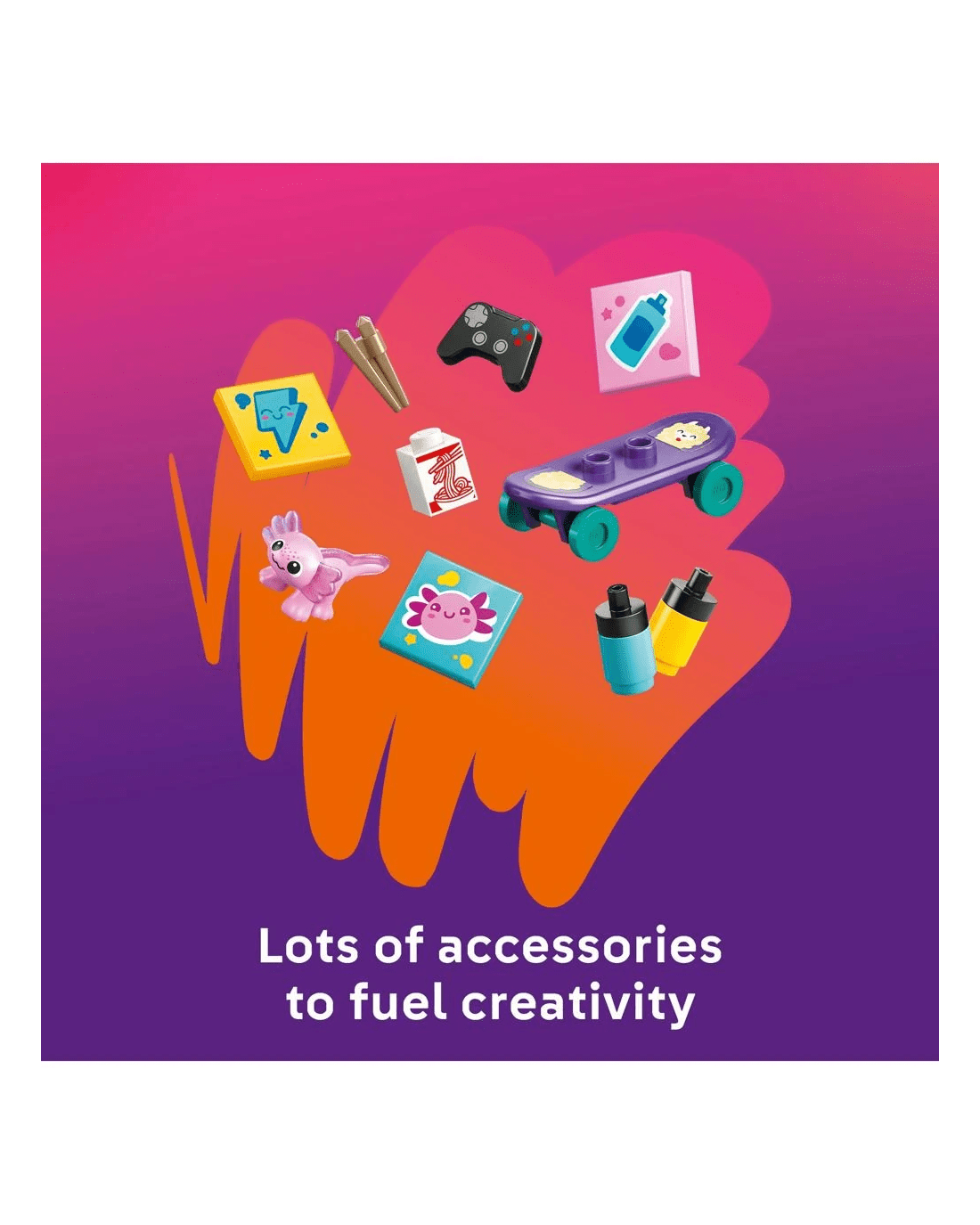 Welcome to Liann's Family House where kids create their own stories. Girls and boys can explore the beautiful LEGO toy house with its kitchen, living area, bedroom, balcony and garden. Try out different hobbies as Liann and her friends enjoy skateboarding, art and caring for the pet gecko and axolotl toy.