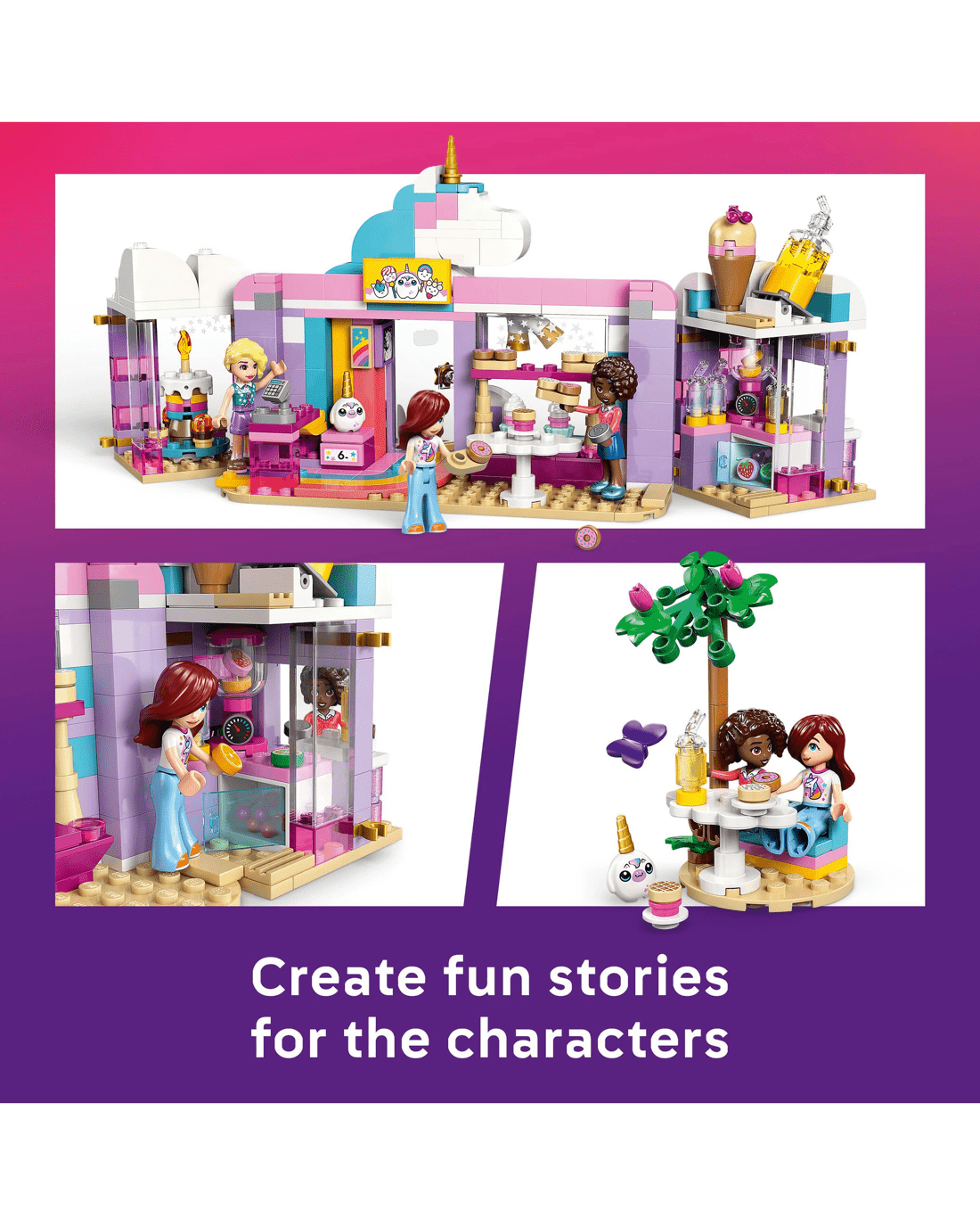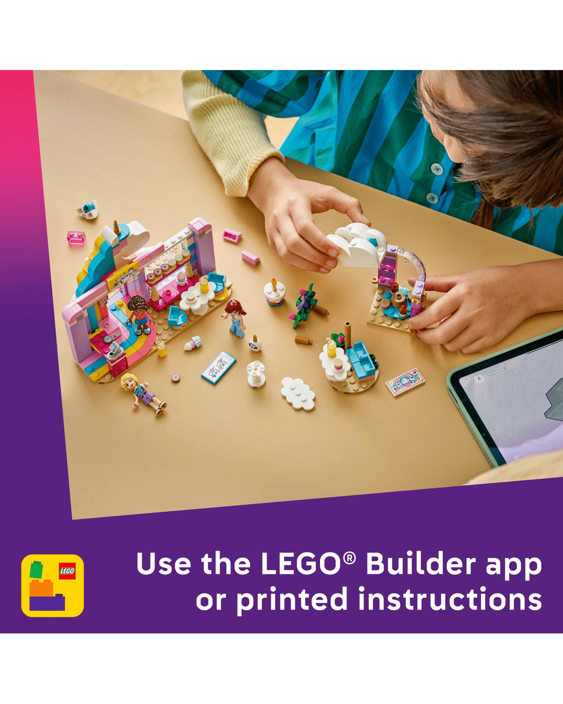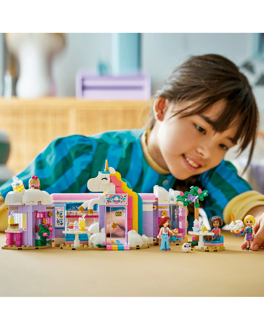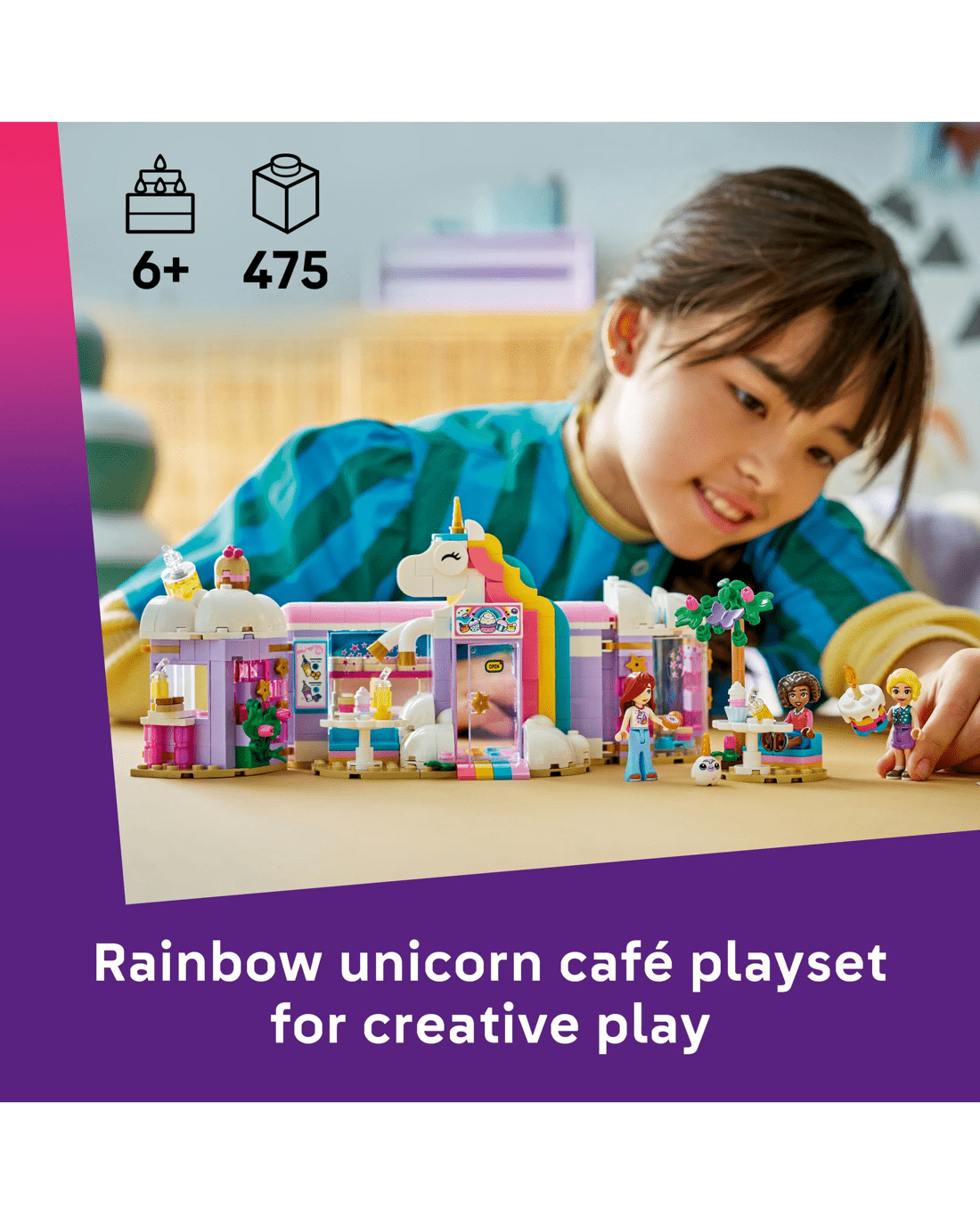 - Rainbow Unicorn Cafe Playset - Kids can pretend-play being Cafe owners with this detailed LEGO Friends Unicorn Dream Cafe set including 3 minidolls and toy cakes for imaginative play