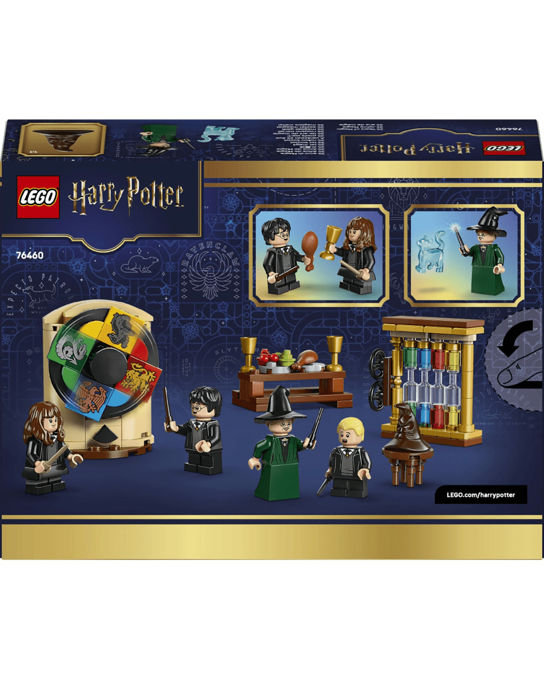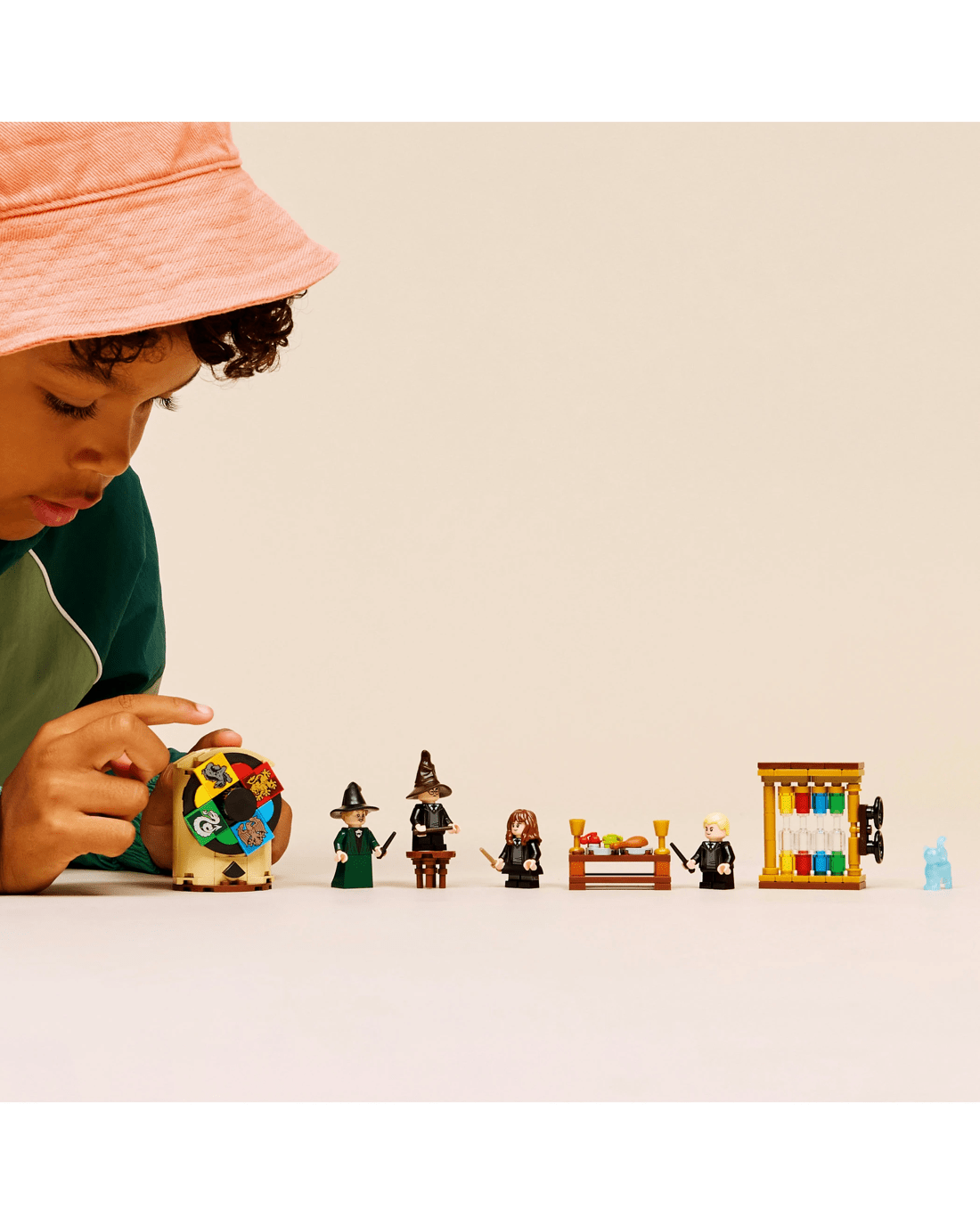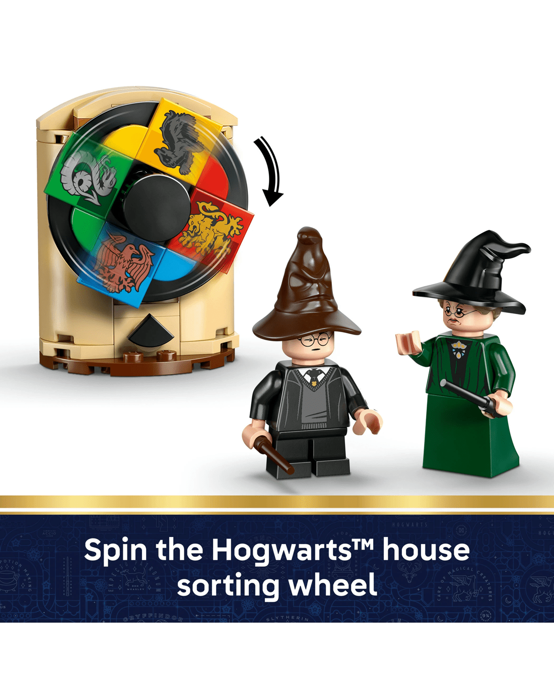 Relive the Sorting Hat ceremony at Hogwarts Castle from Harry Potter and the Philosopher's Stone with this LEGO Harry Potter building set for kids. A fun Harry Potter toy gift for boys, girls and any fans, it features four LEGO Harry Potter minifigures: Professor McGonagall, Harry Potter, Hermione Granger and Draco Malfoy. Place the Sorting Hat on each student and spin the 'sorting wheel' to discover which Hogwarts house they will join. A dinner table and house points counter add to the play possibilities.
