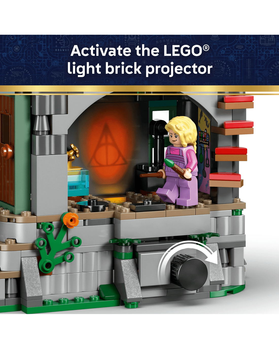 Pull out furniture from the kitchen for easy play and activate the LEGO light brick to project images from The Tale of the Three Brothers on the wall. Check out Luna's bedroom and Xenophilius Lovegood's printing workshop. And recreate the heroes' escape scene with the Erumpent horn. The set also includes Luna's Hare Patronus, one in a collectable series of LEGO Harry Potter 25th anniversary Patronuses (in sets sold separately).