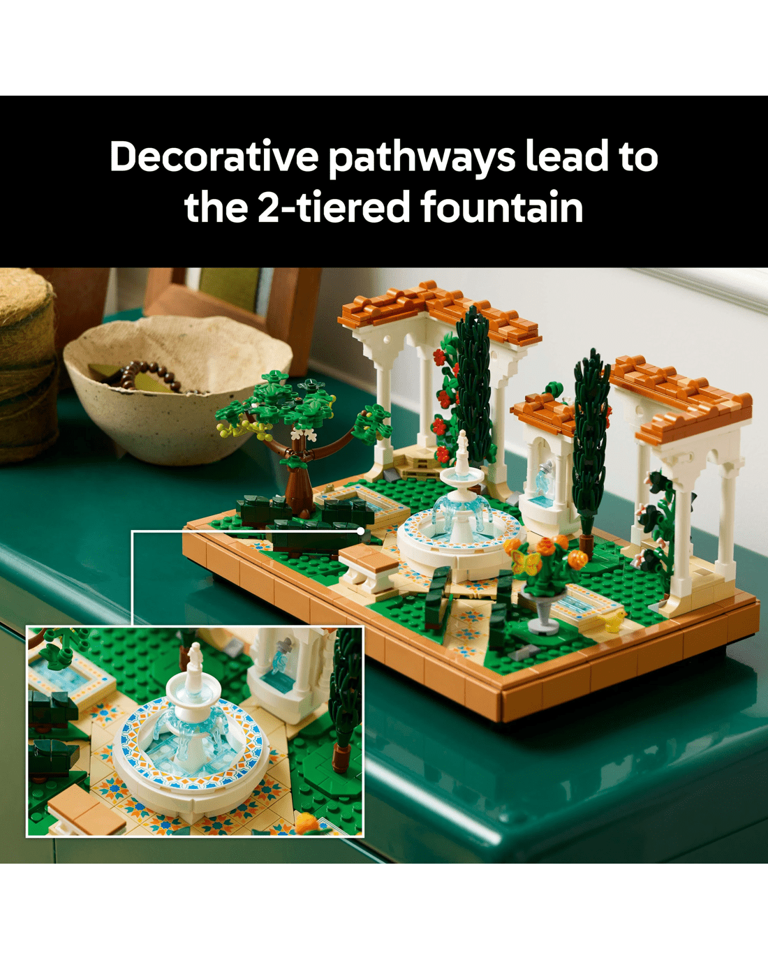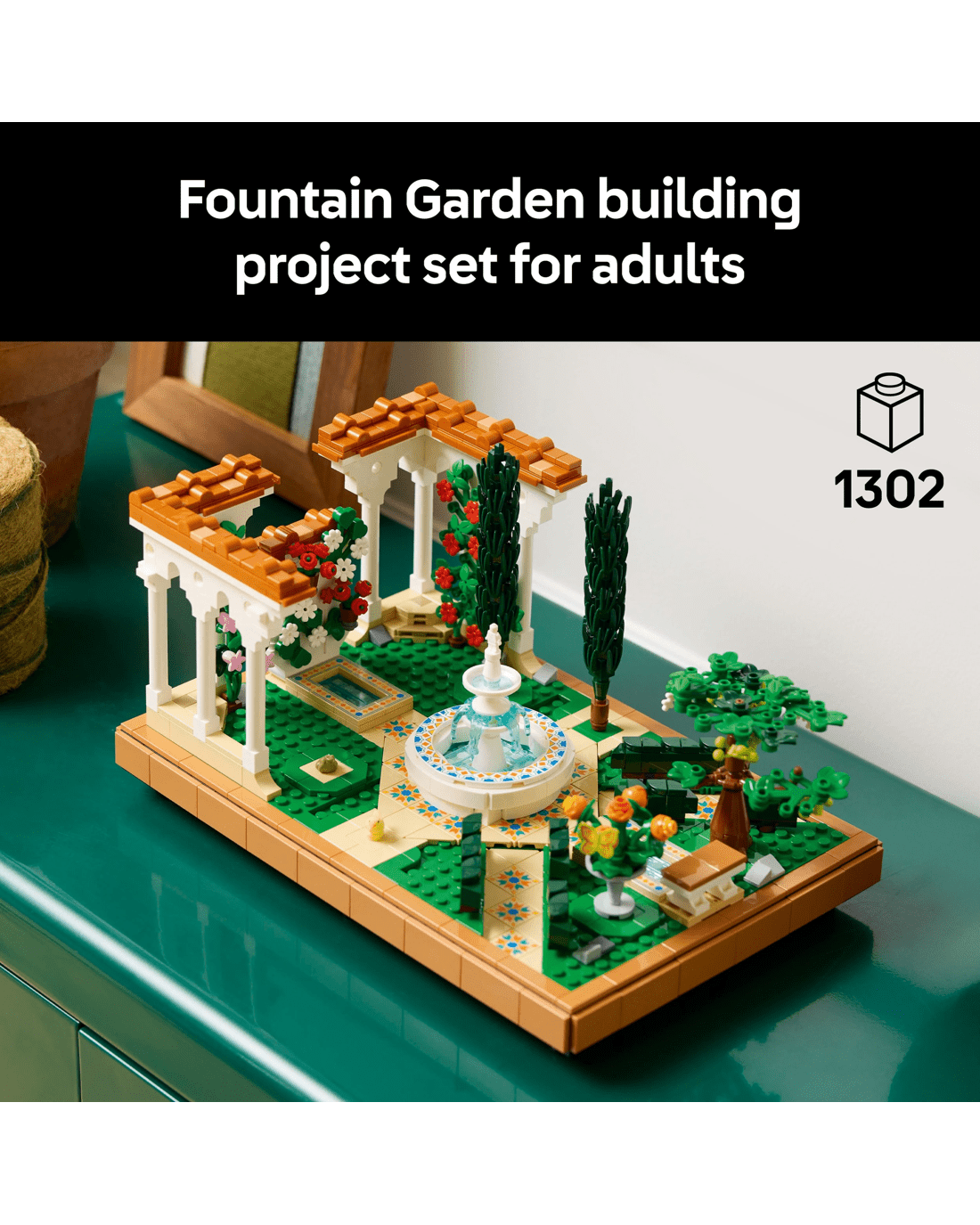 - Ornate garden building set for adults - Take time out for a mindful project with the LEGO Icons Fountain Garden building kit