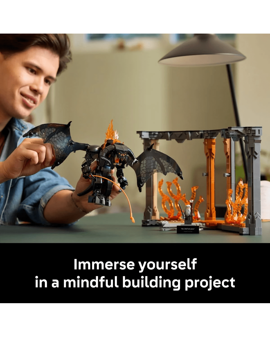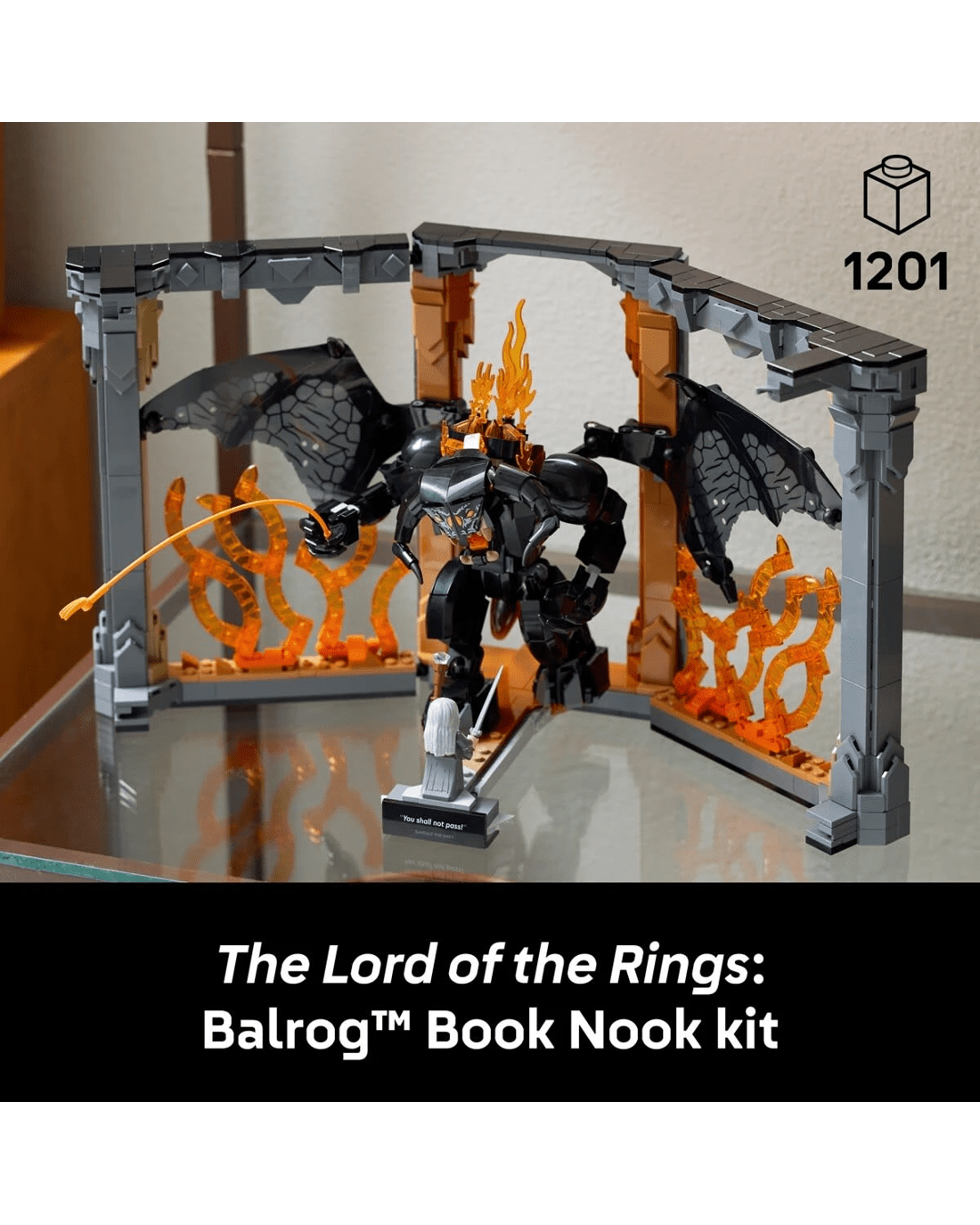 - What's in the box - Includes all you need to build the LEGO Icons The Lord of the Rings: Balrog Book Nook, a Balrog figure with a fiery whip and a Gandalf the Grey minifigure with a staff and sword