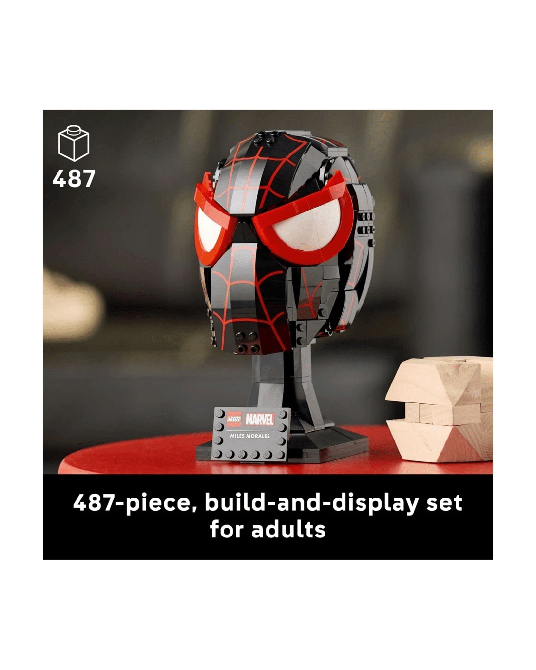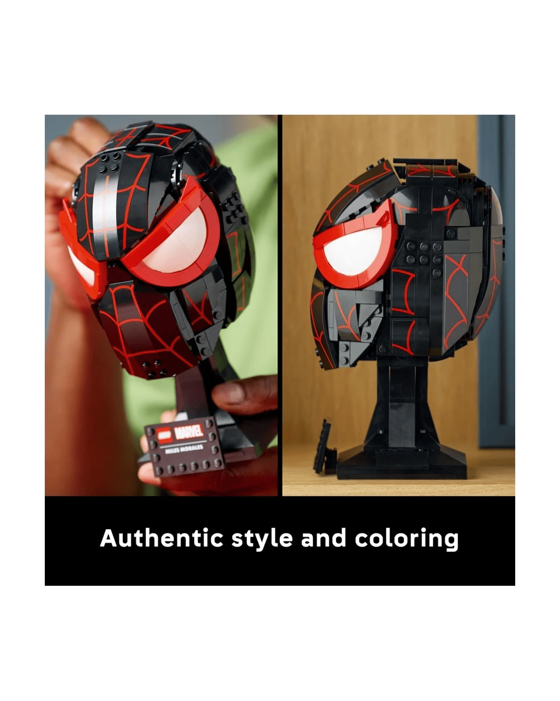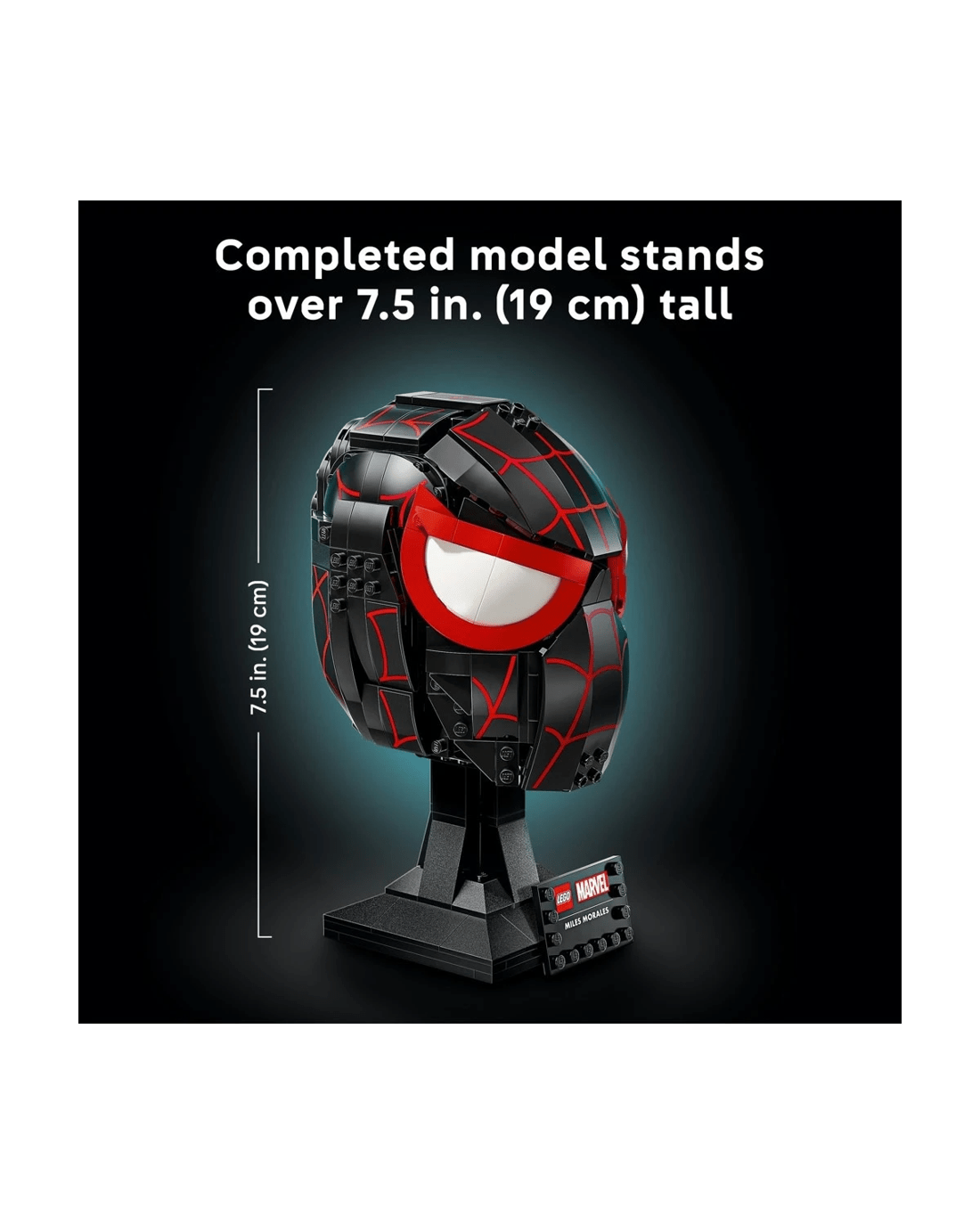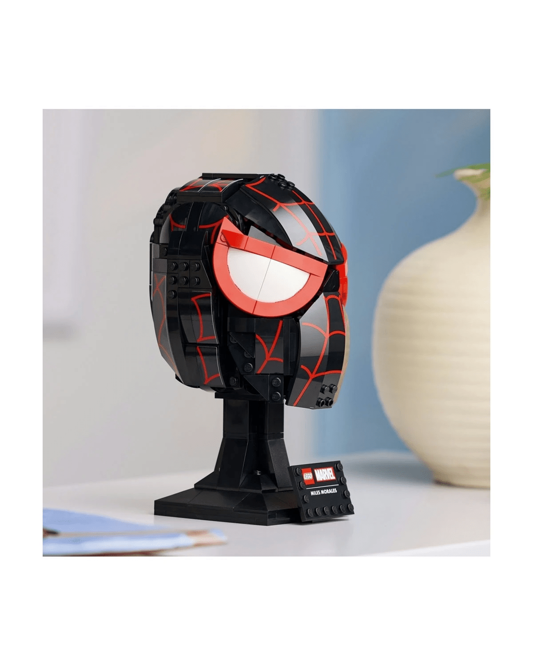 - LEGO Marvel collectible to build and display - The Miles Morales' Mask sits on a sturdy stand incorporating a nameplate