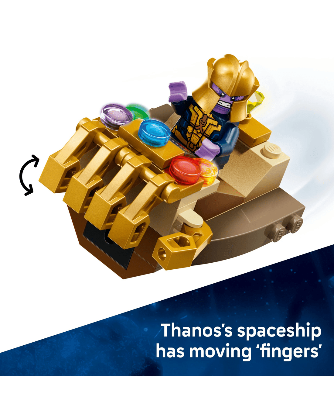 - Spaceships - Thanos's ship is inspired by his Infinity Gauntlet, and has moving 'fingers' and a missile launcher, while Captain America pilots his Quinjet, featuring 2 shooters and an opening cockpit