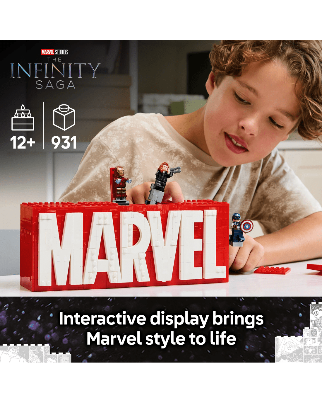 - Buildable MARVEL Logo & Minifigures set - Kids and Super Hero fans can recreate the famous MARVEL logo in a LEGO Marvel Avengers set containing an explosive surprise for boys and girls