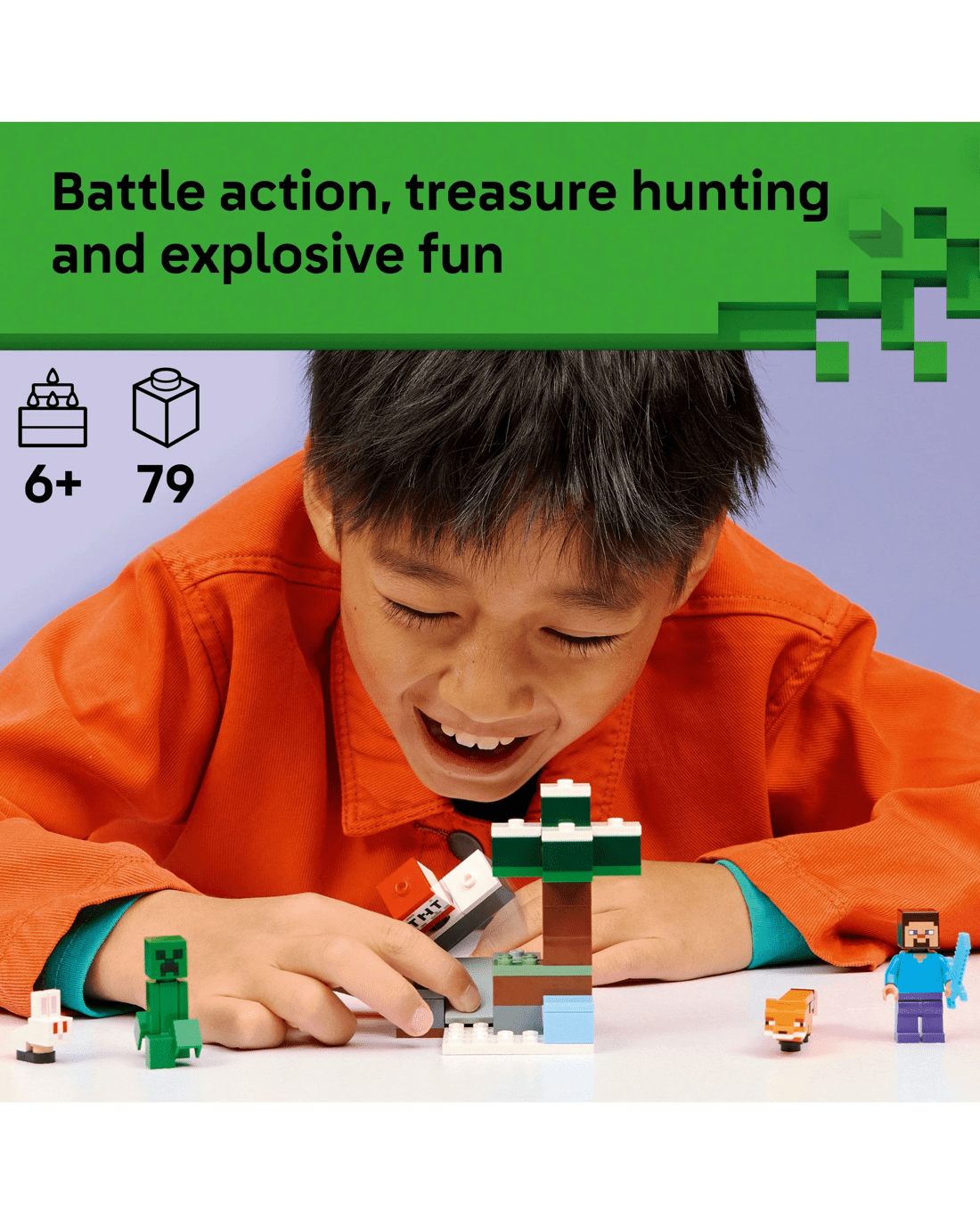 Take Minecraft players' gaming to the next level with Steve's Taiga Adventure, a collectable building set for boys and girls. This small LEGO set is bursting with battle action, treasure hunting and explosive fun for kids to explore with a Steve minifigure, plus Creeper, fox and baby bunny LEGO figures.