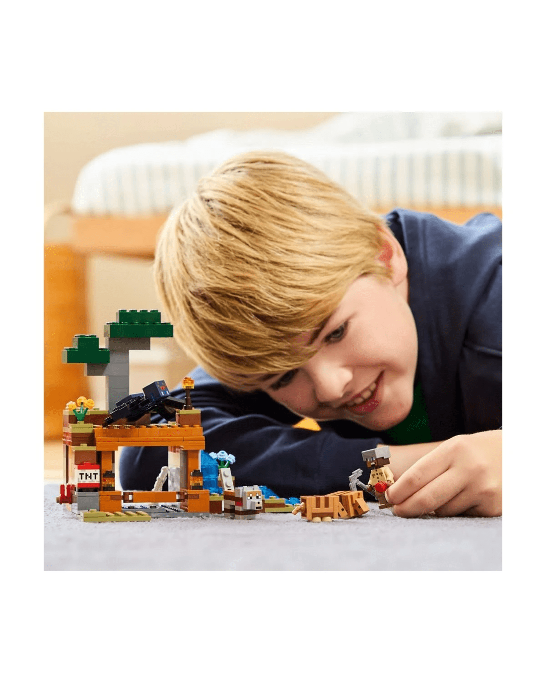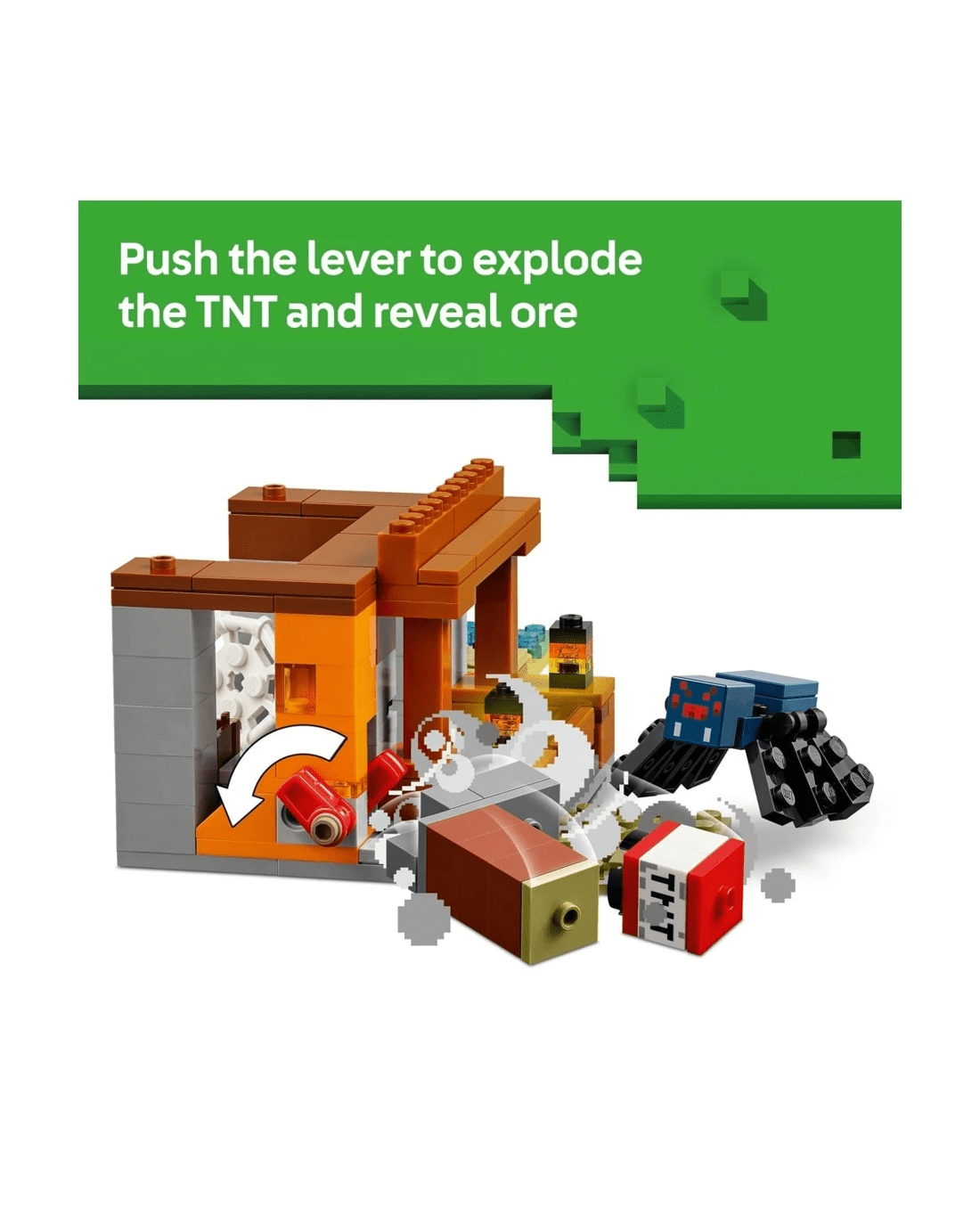 - Video game playset - The action takes place in the game's savanna biome, and the set features a mine with a lever-controlled TNT function that blasts away a piece of the terrain to reveal precious ore