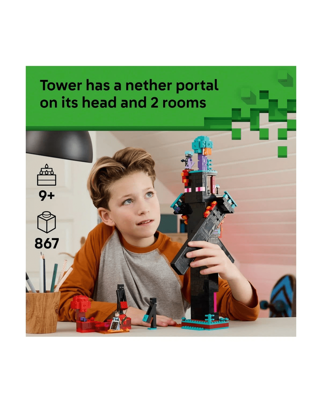 - 867-piece set - The Enderman tower stands over 45cm tall