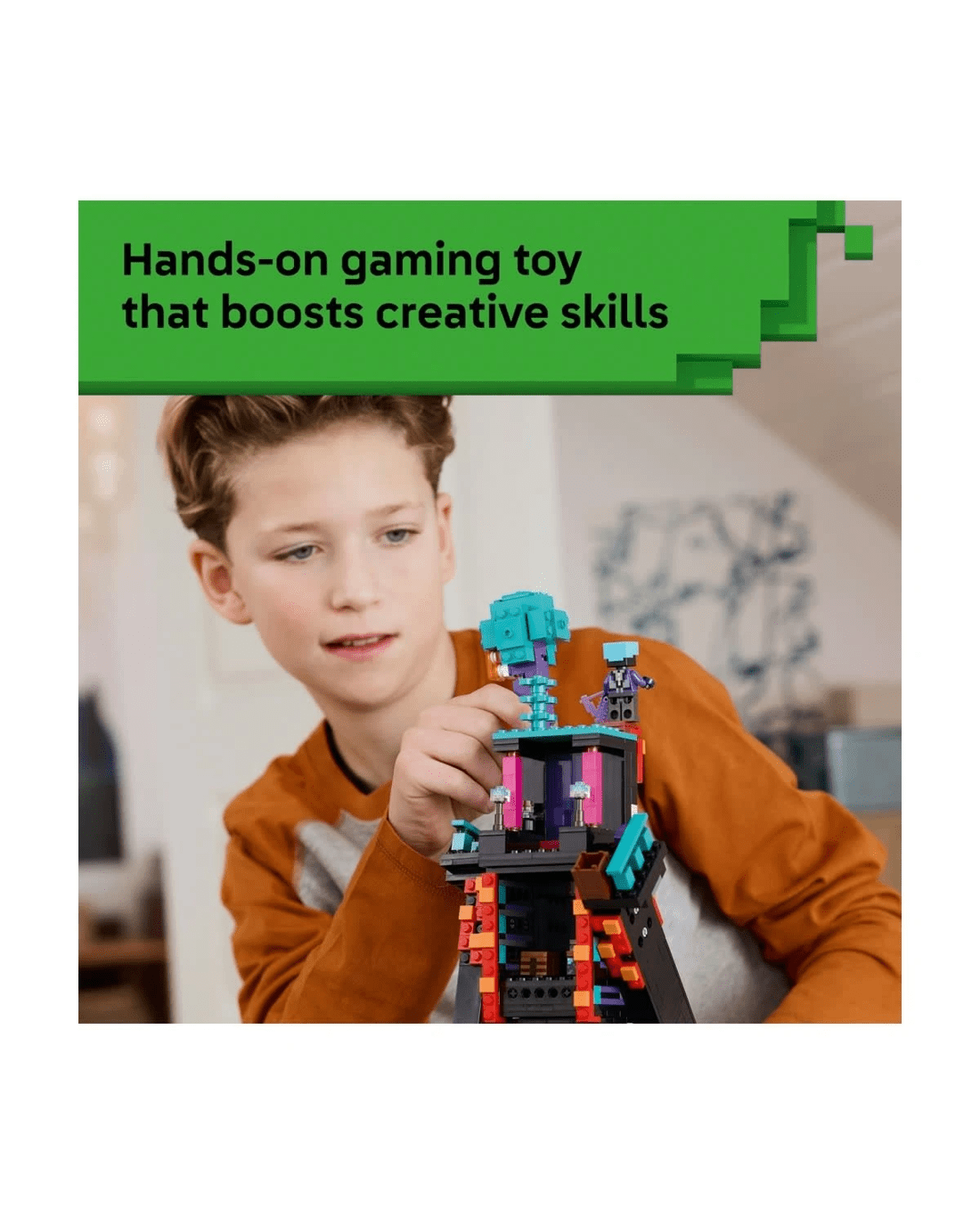 The high-quality Enderman Tower toy is ideal for kids who like creative play and gaming decor. With a modular design that can be rearranged for endless play and display possibilities, this LEGO Minecraft building toy makes an ideal gamer gift for boys and girls