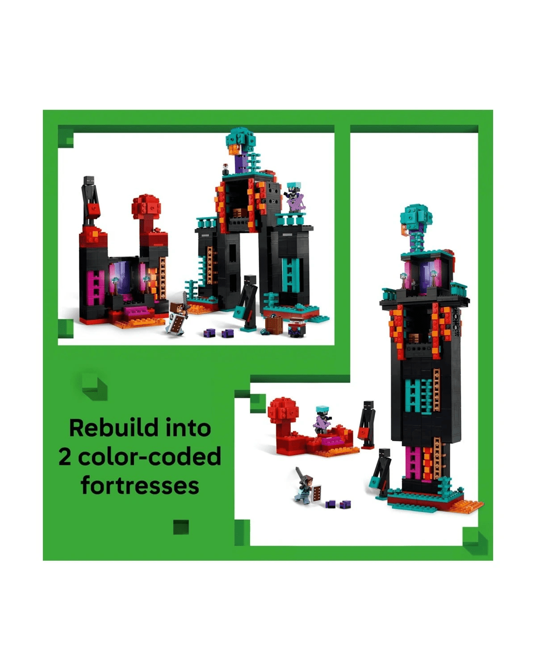 - Many ways to play - The Enderman Tower model can be rebuilt into 2 colour-coded fortresses, which is great for PvP (Player versus Player) action