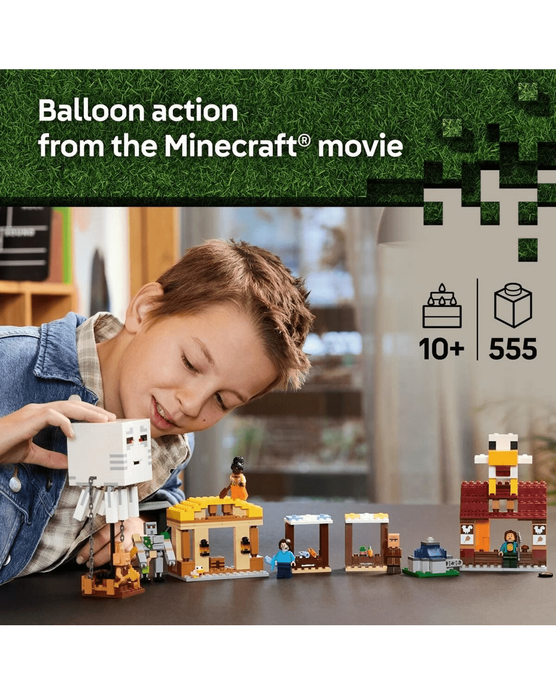 - LEGO Minecraft gamer gift - The Ghast Balloon Village Attack toy for kids is a creative build-and-play set for boys and girls that recreates a scene from the Minecraft movie