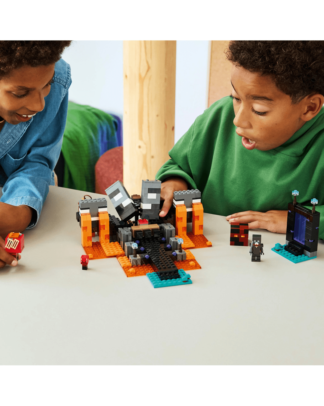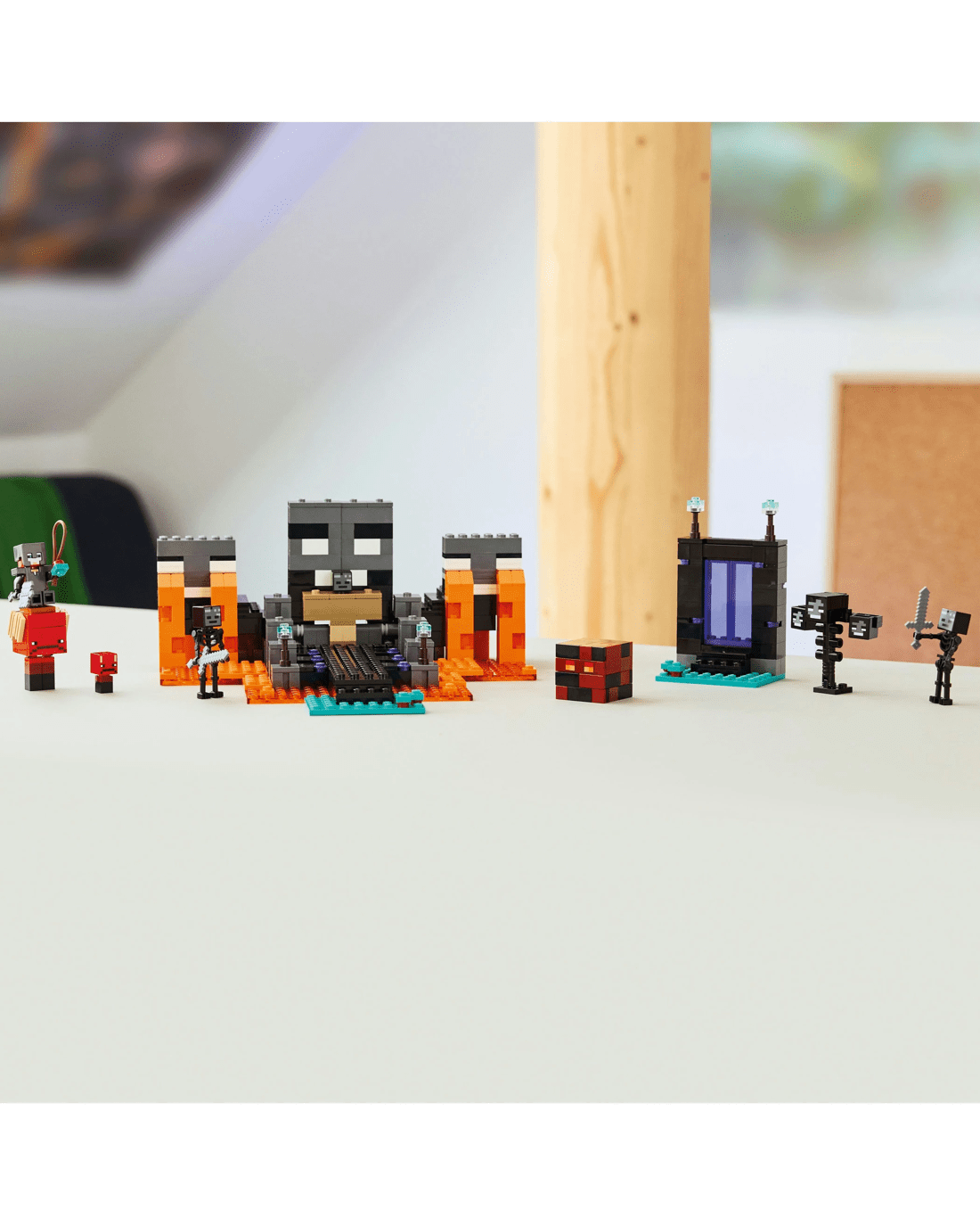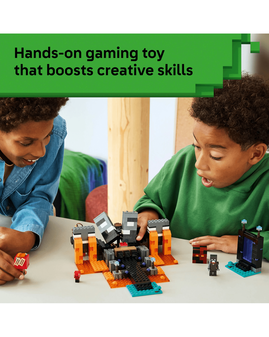 - Pretend-play Gaming Toy- This multifaceted Minecraft playset takes kids through the Nether portal to a wither shrine, which includes an explosion function that causes the wither to appear