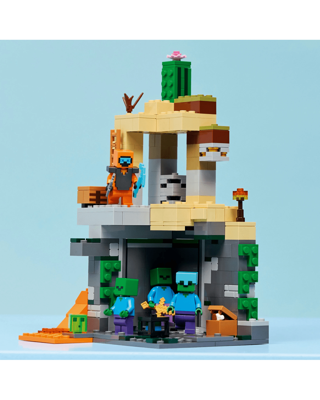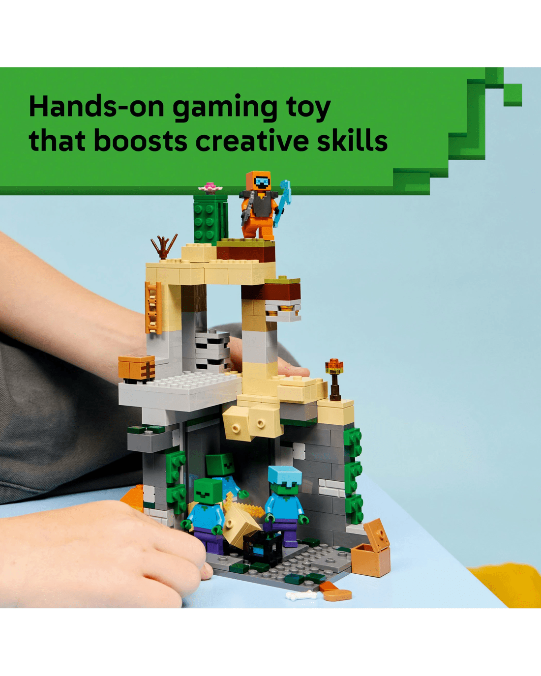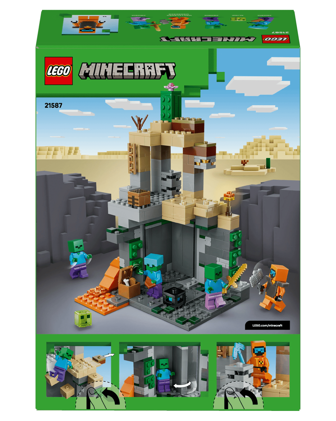 - Pretend Play Toy - Set in the Minecraft desert biome, this set offers hands-on features to inspire imaginative play such as a rotating, zombie-spawning chamber and sliding piece to trigger a rockfall