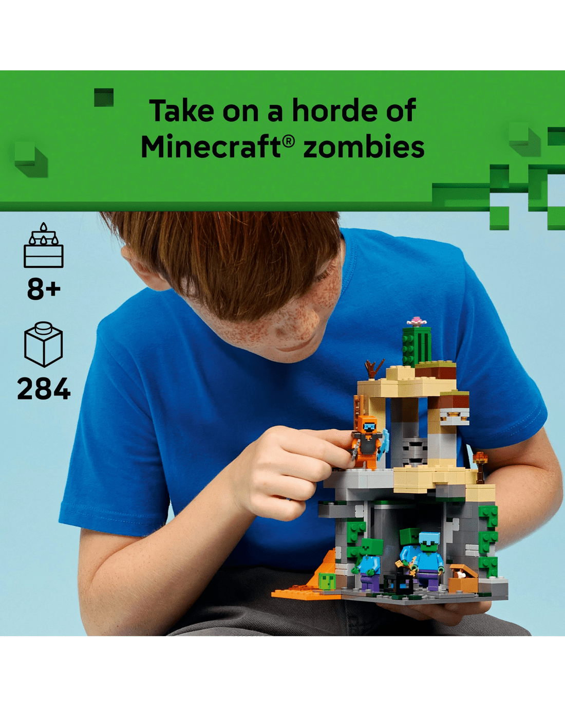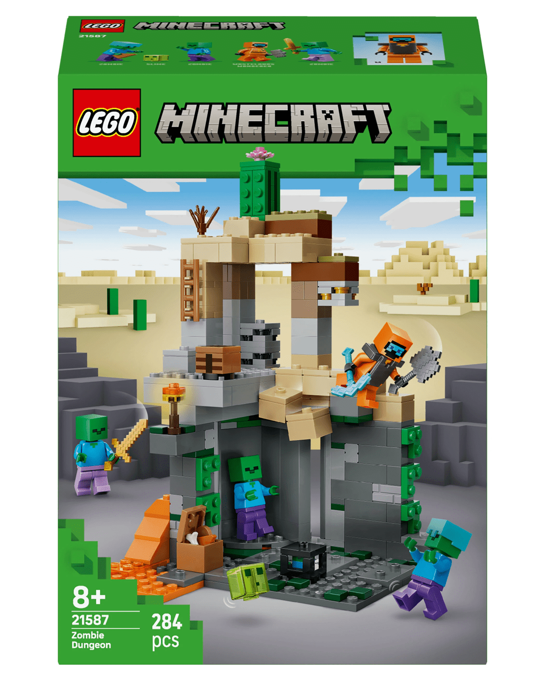 - Dimensions - The 284-piece LEGO Minecraft Zombie Dungeon building set measures over 21cm high, 12cm wide and 15cm deep